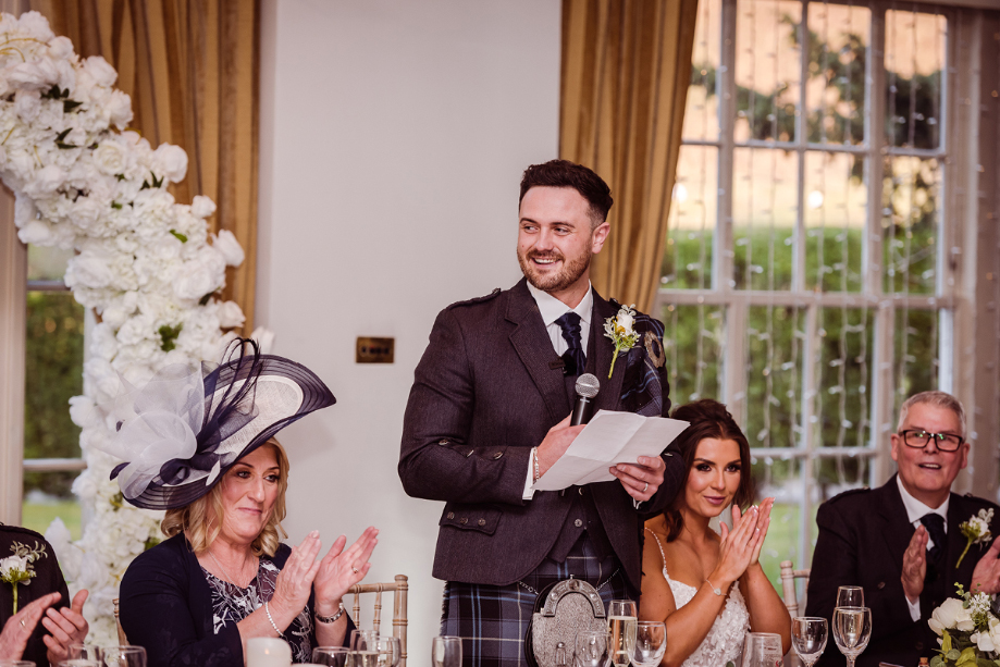 We have to give a massive shout-out to Balbirnie’s Master of Ceremonies, David. He was incredible from start to finish. He helped to get the boys dressed in their kilts in the morning; he lifted the train of my dress during our couple’s photoshoot; and ensured the reception ran faultlessly. Our wedding was absolutely seamless and it was all down to him.