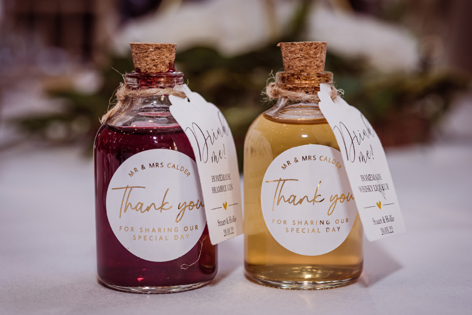 Additional favours Gin, vodka and whisky liqueurs made by the groom’s dad