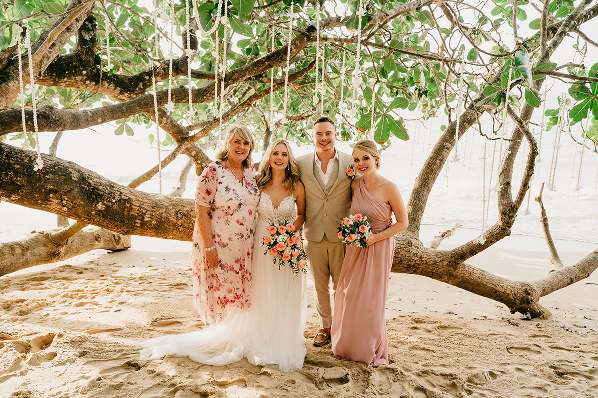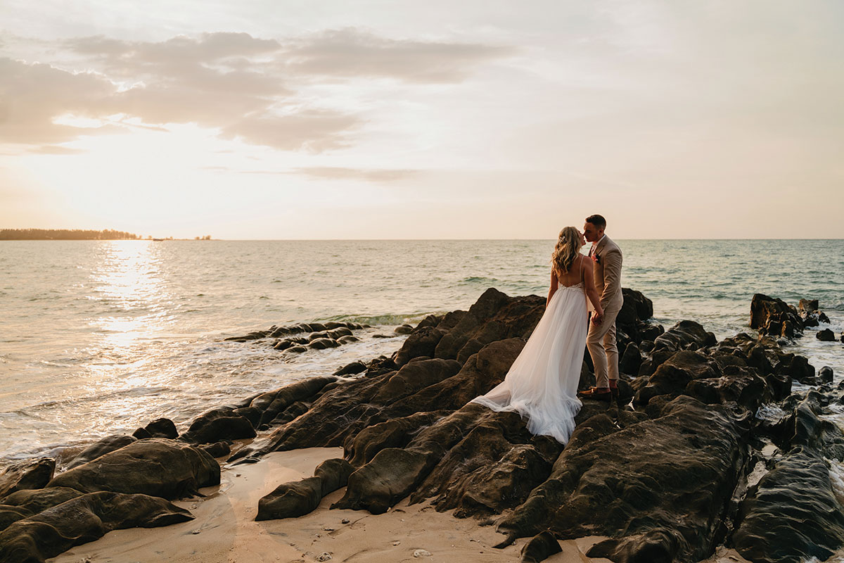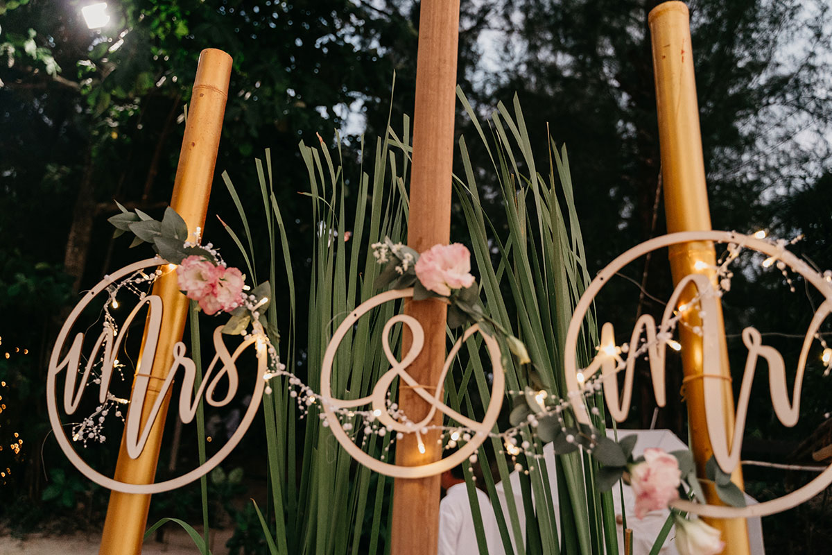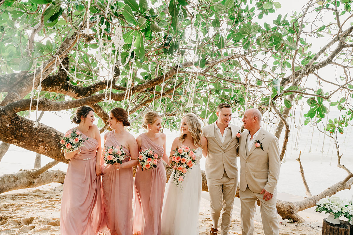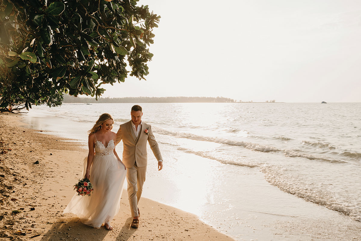 Thailand is a special place for us (we’ve visited lots), so we knew we wanted to get married there. As soon as we saw The Sarojin we knew it was the place for us. It’s absolutely stunning. The ceremony was on a white, sandy beach under a ‘wedding tree’ that was decorated with lots of hanging flowers. It had a serene, tropical feel.