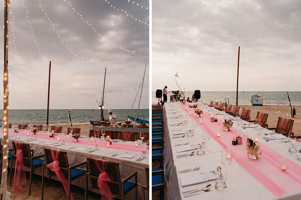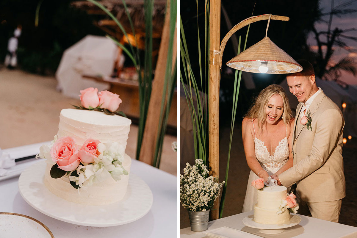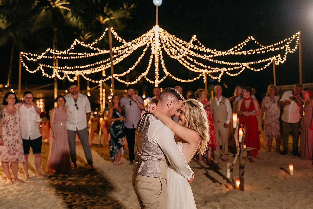 After the ceremony, our guests showered us in petal confetti. Then, we spent time taking in the views and mingling with prosecco and canapés. For the reception, we had exclusive use of the beach area. It was set up with hundreds of candles and fairy lights, and a jazz band performed. We had a huge seafood BBQ buffet, complete with chefs’ cooking stations and our very own beach bar.