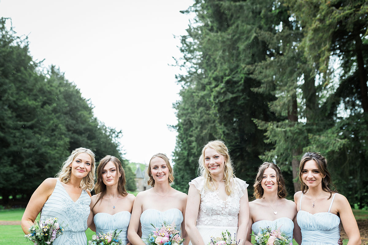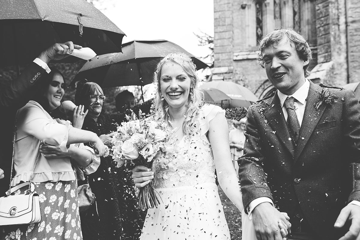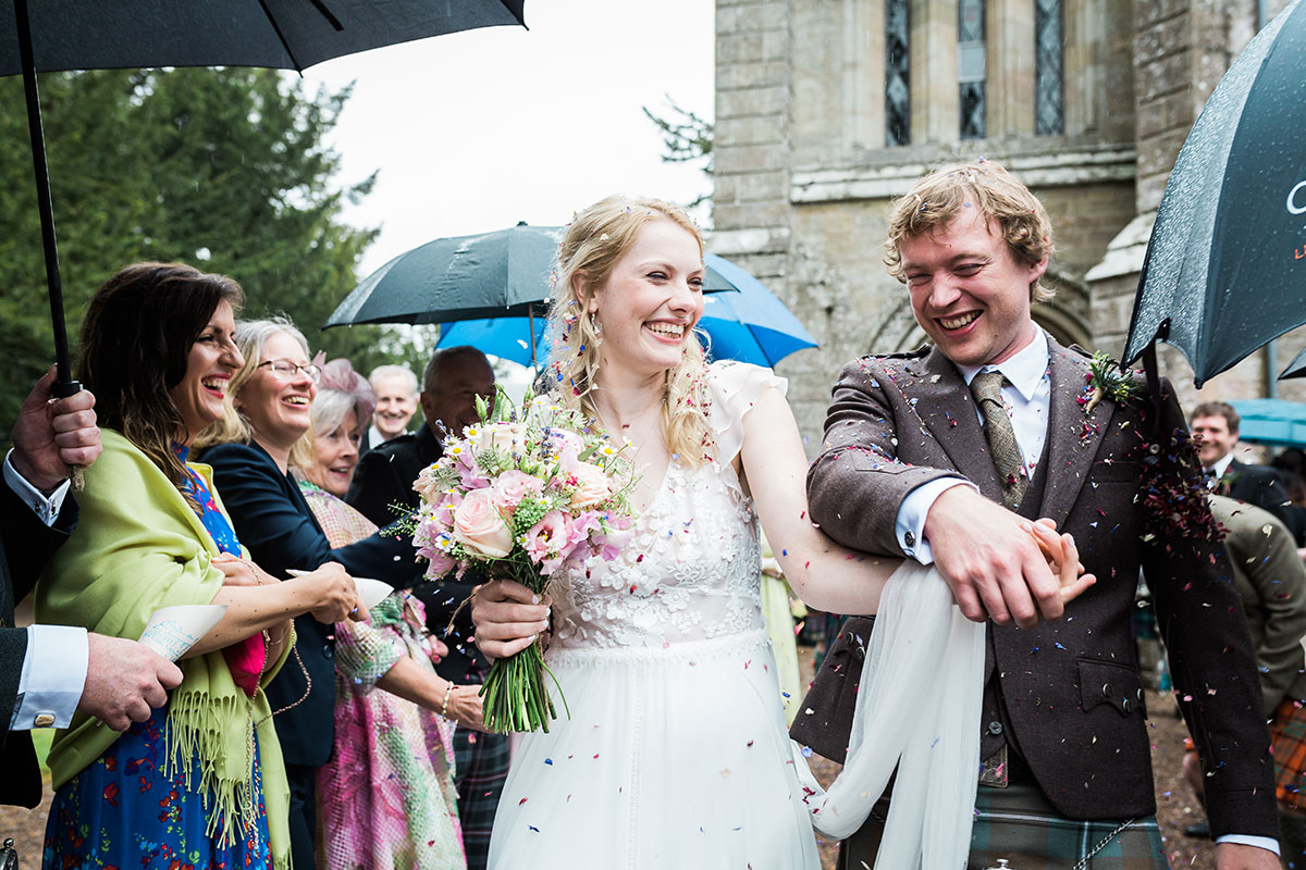 It poured all day at Georgina and Ross’s wedding at Murthly Estate, but the marquee was filled with colourful DIY decor, music, food, love and laughter so the weather didn’t matter a jot