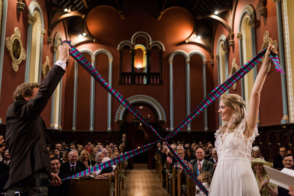 The ceremony was our favourite bit of the day actually. We went all-out with traditions: we drank from the quaich, we had a hand fasting, the guests sang, we had a reading and my bridesmaid, Kirsty Fisher, performed while we signed the register. It was all special and – this will sound cheesy – there was an awful lot of love in that room.