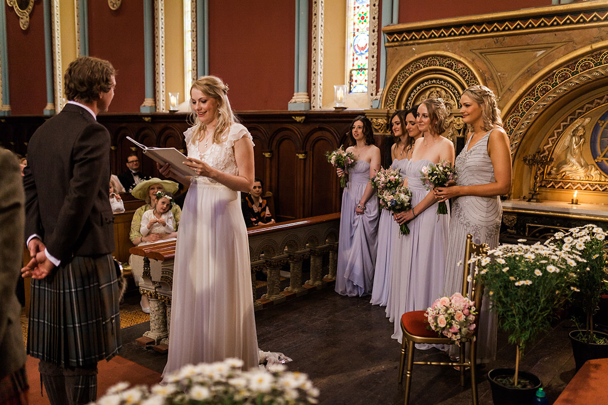 We opted for a humanist ceremony as, based on attending friends’ weddings, we love how personal they tend to be. Our amazing celebrant Lara Celini from Humanist Society Scotland kept us right the whole way through.
