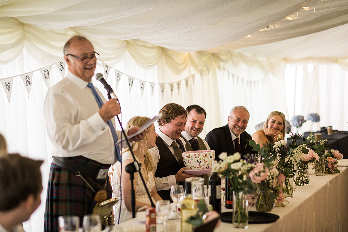 We had a hog roast from Highland Spit Roast and caterers Wilde Thyme provided the rest of the food. The latter basically ran the show, truth be told. They helped organise the running order of the day and the speeches, did all the setting out of furniture and layout of the marquee. Most of all, they just really put our mind at ease during the planning and throughout the day itself.