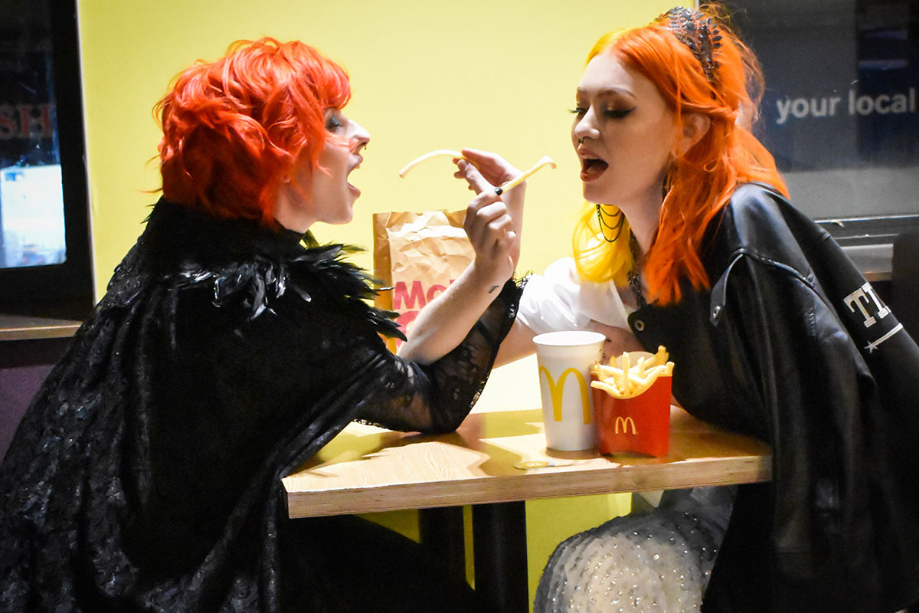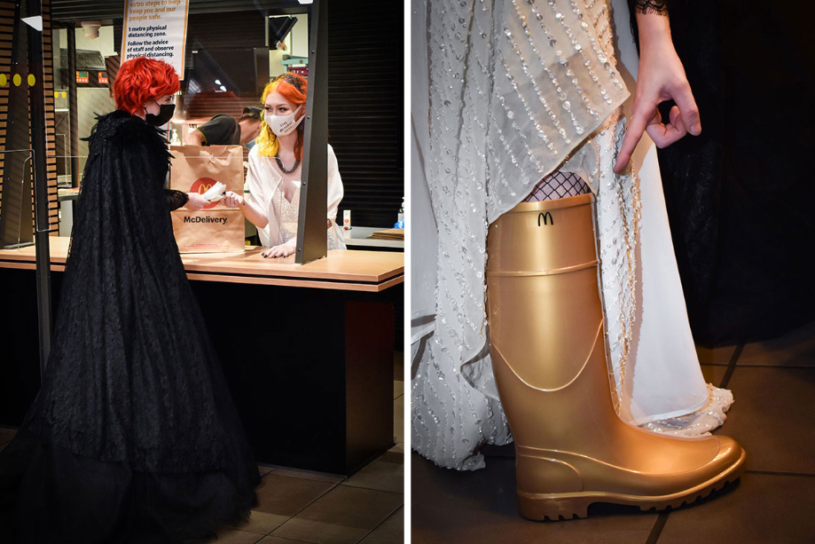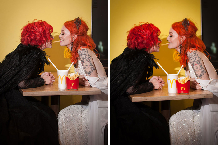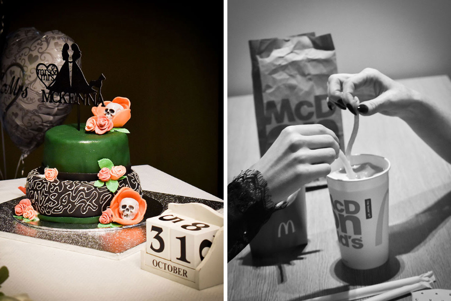 Melissa and Shannon’s McWedding kicked off with a spooky Harry Potter-meets-Halloween ceremony before a sit-in feast of Chicken McNuggets and fries (dipped in milkshake) under the glow of the Golden Arches