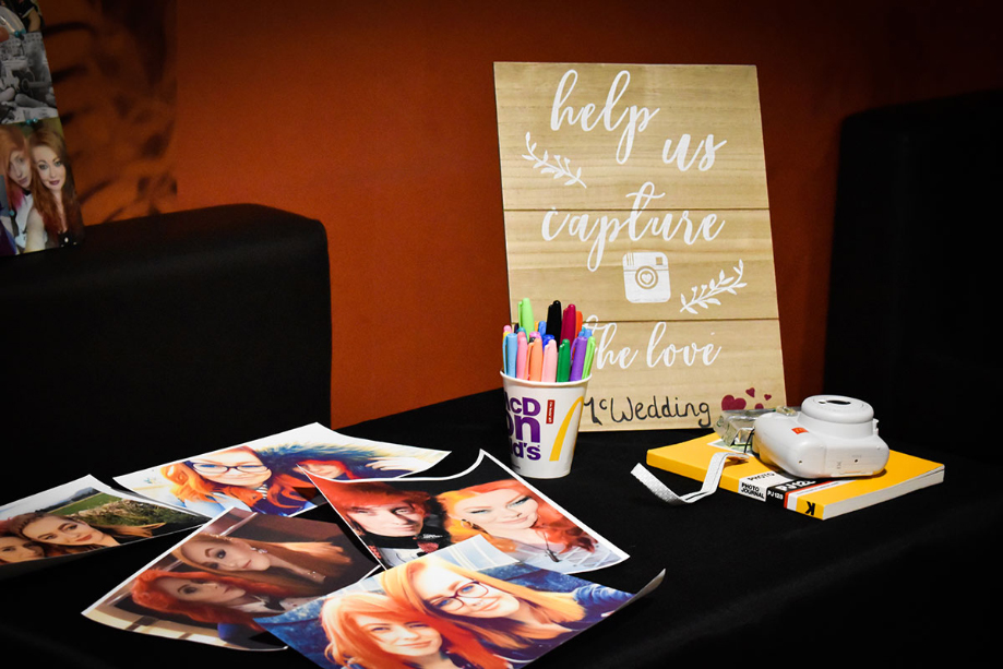 They organised a personalised poster on the menu board outside announcing our wedding and had a local bagpiper pipe us into the restaurant. We were treated to proper plates and cutlery, and they even had our favourite discontinued meal items brought back for us! I have yet to hear the end from our guests about how much they loved their McDonald’s food and personalised menus.