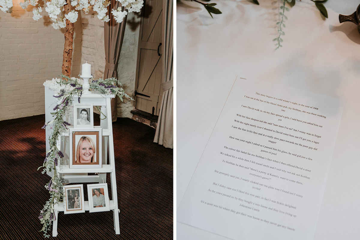 We named our tables after places and things that tell the story of our years together: The Hazel Arms (where we met); Sunday Club (breakfast and a few drinks which we used to do with friends); Beck’s (our favourite tipple) and Guitar Hero (which is what we used to do together when we first met).