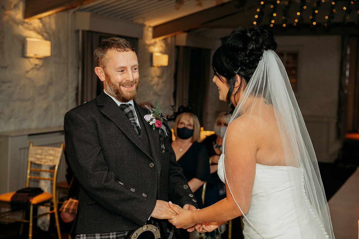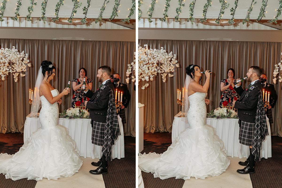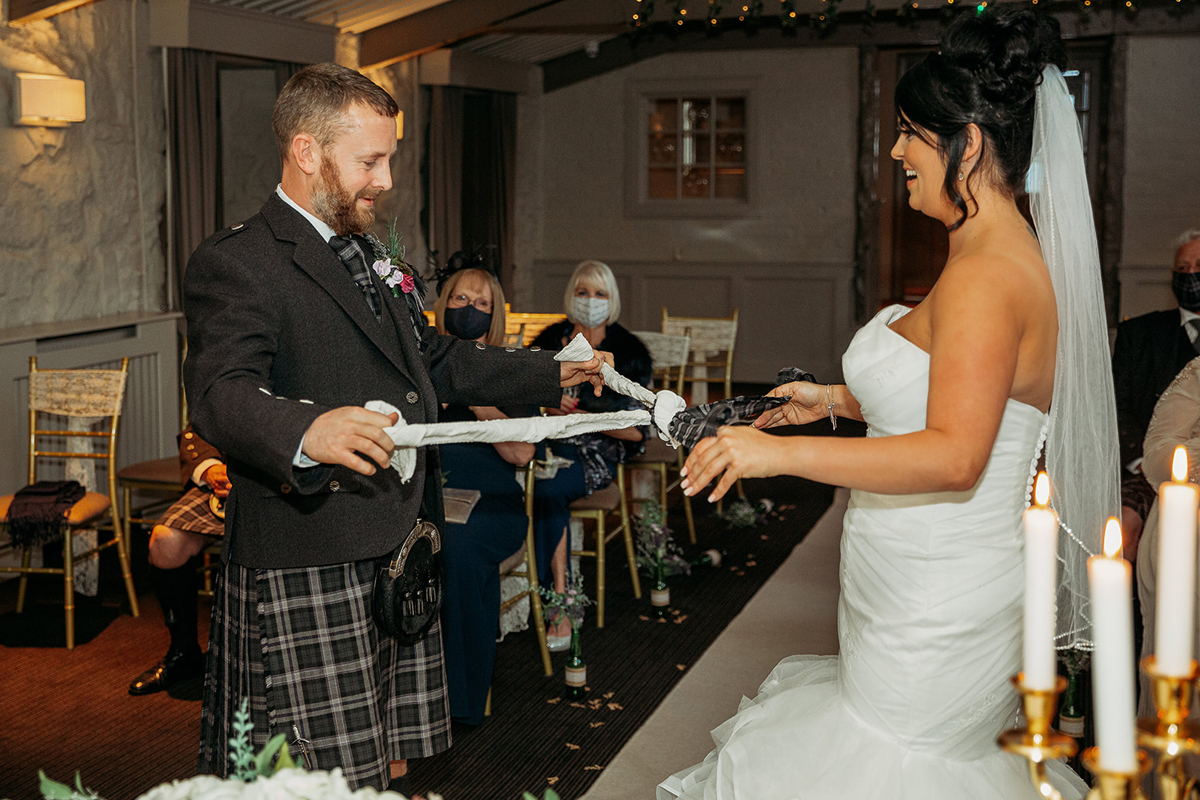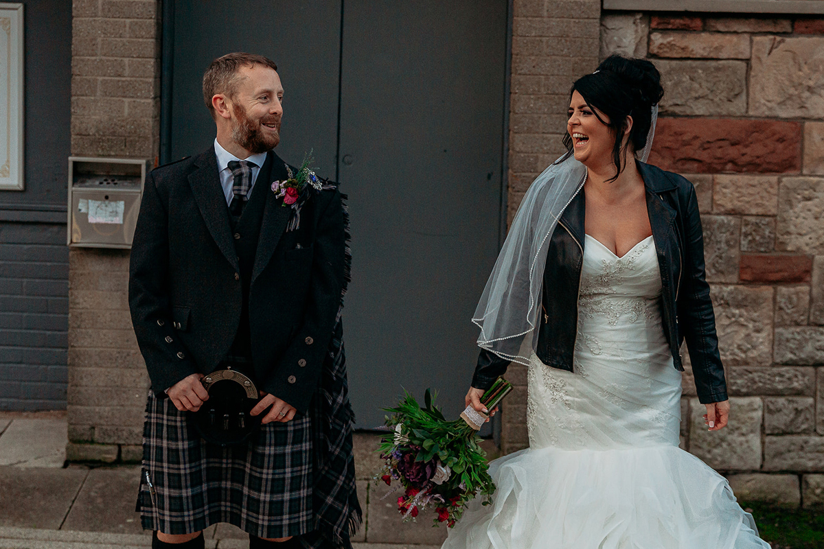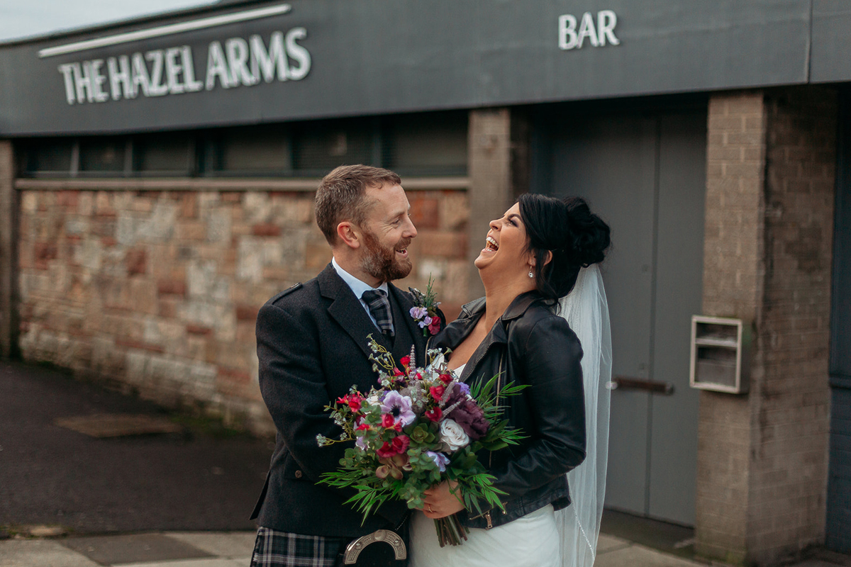 From the bride’s ‘something borrowed’ alternative footwear to toasting with Beck’s at the end of the ceremony, Siobhan and David’s Covid-rearranged wee wedding reflected them perfectly