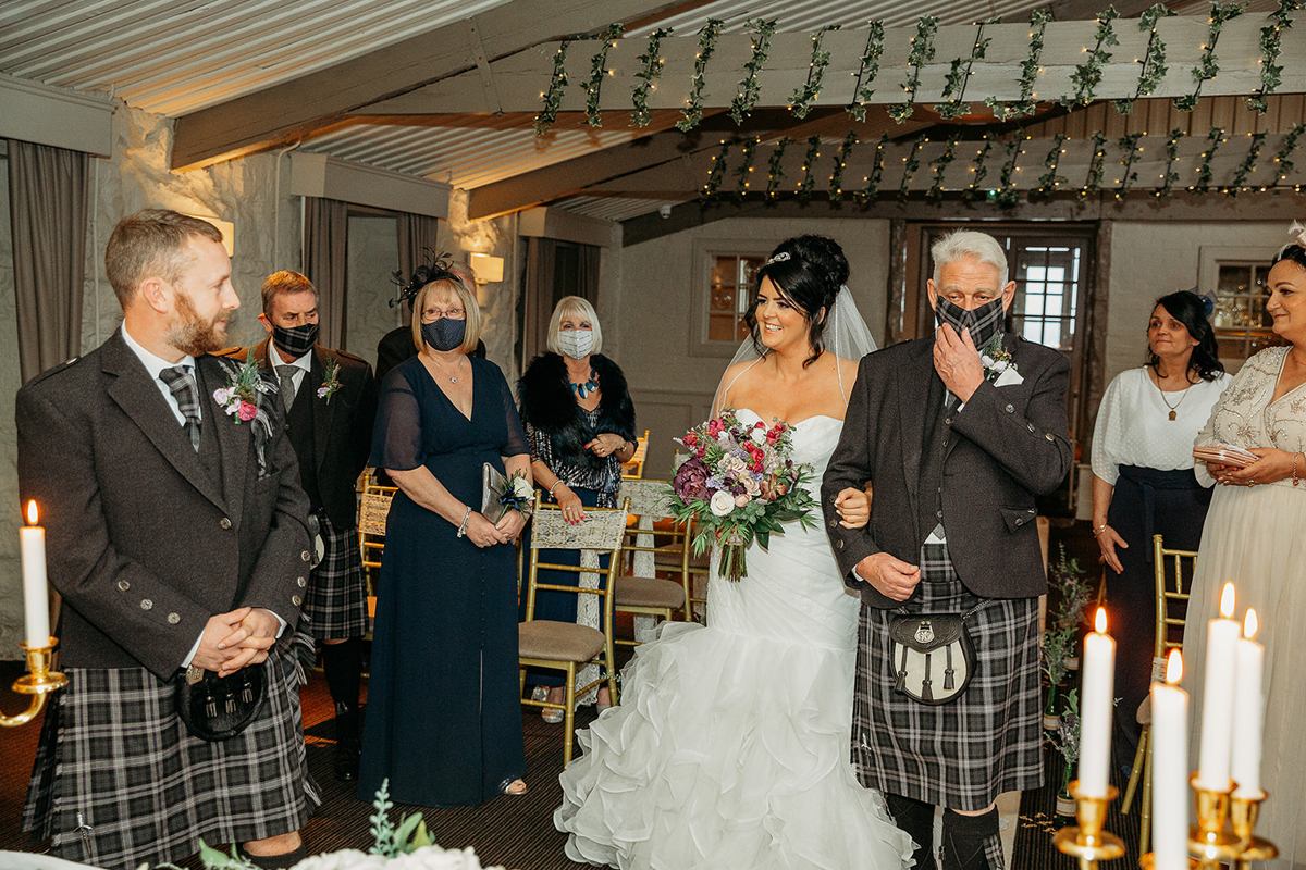 Our original plan was to get married in Johnstone Town Hall in August 2020. We then postponed until April 2021, but we started to worry that we still wouldn’t be able to have the numbers we wanted by then, so we decided to bring the wedding forward.