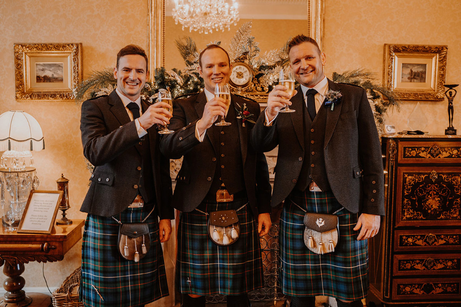 Groomswear Own kilt from MacGregor and MacDuff; jacket hired from McCalls