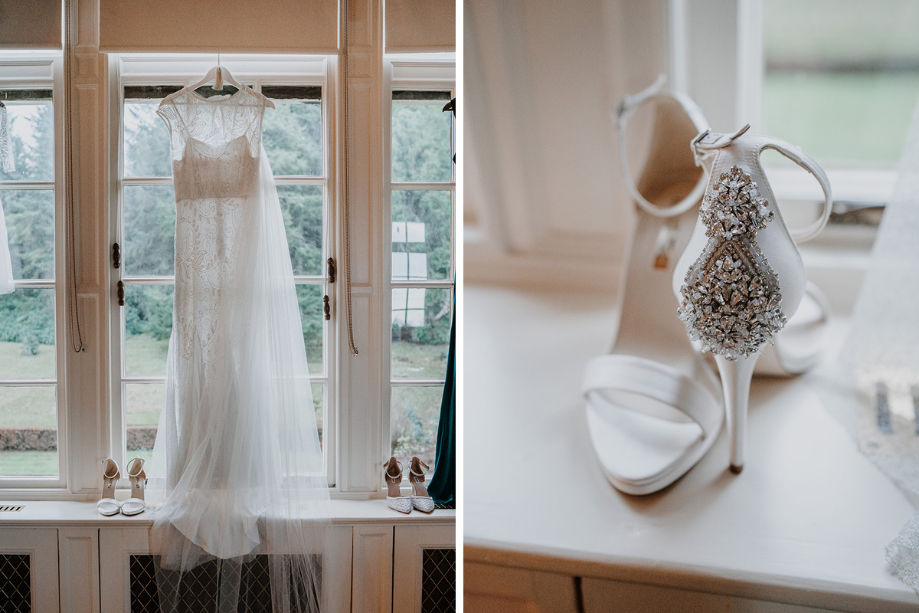 My beaded dress was from Melle Cloche in Glasgow. I had to buy off-the-rail as I had such a short lead-time. Again, Covid worked to my benefit, as cancelled weddings meant the shop was quiet and there was more than usual to choose from.