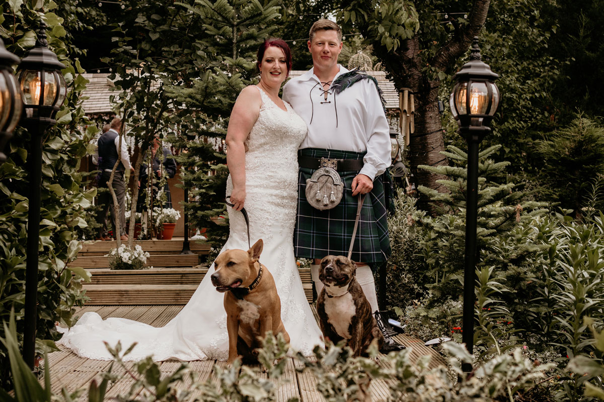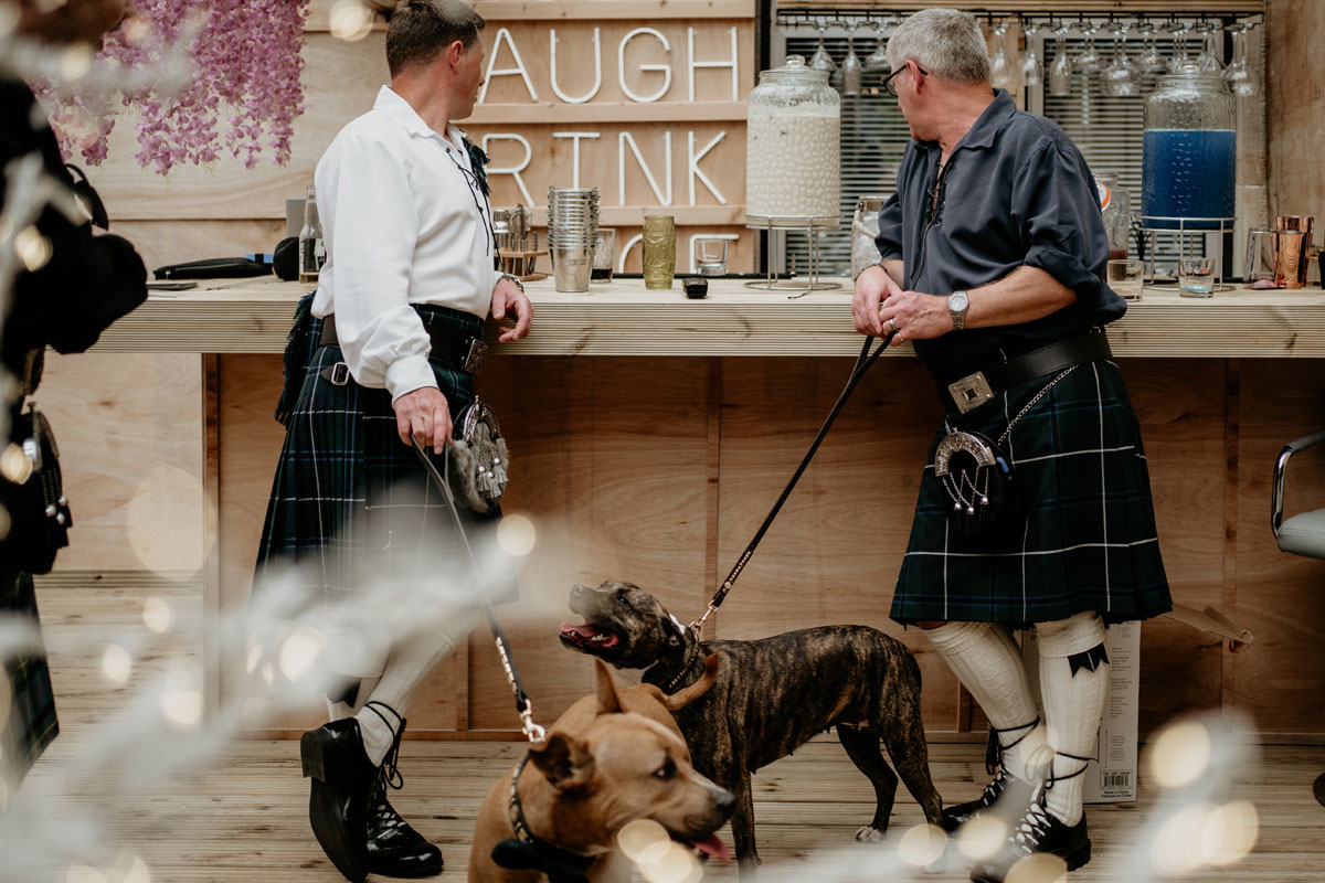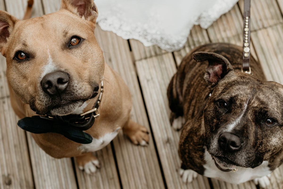 In a nutshell: our wedding was like a big family get-together: BBQ, booze and killer dance moves – but everyone was dressed up and two crazy people got married, with our dogs as ring bearer and flower girl!”