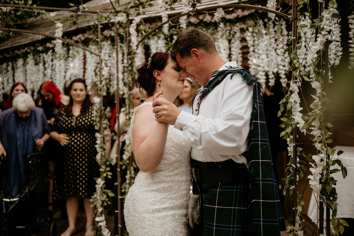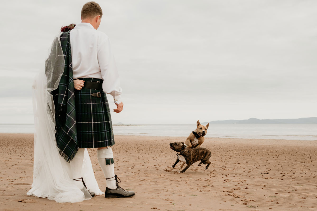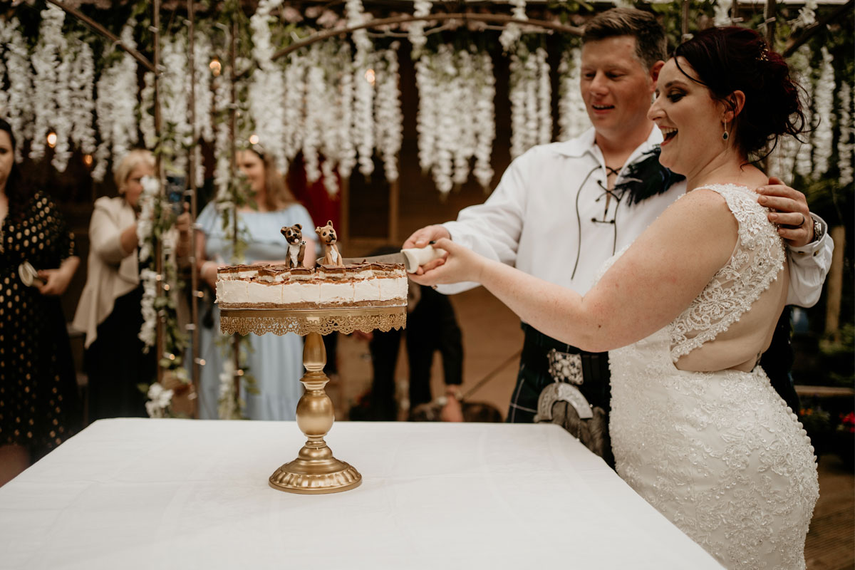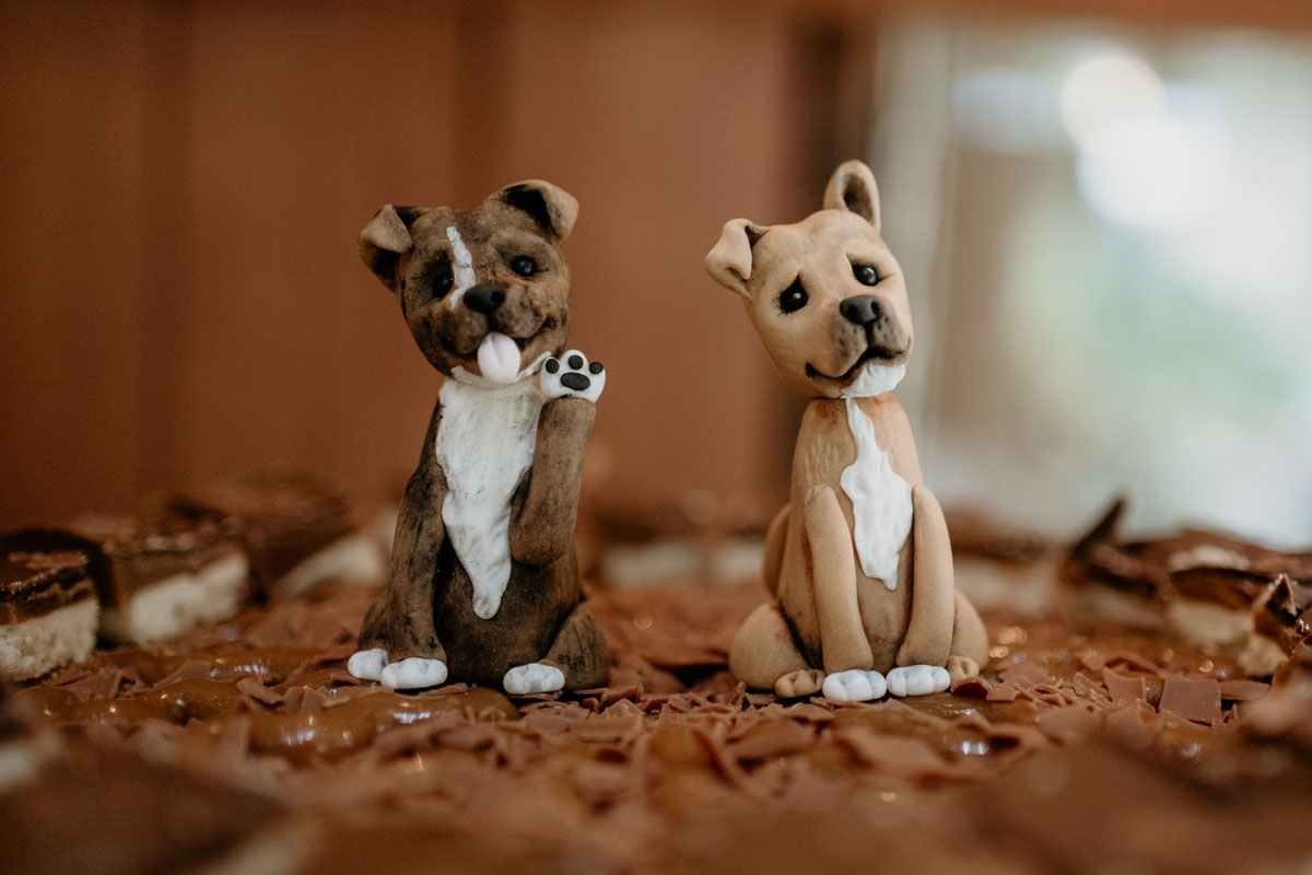 In a nutshell: our wedding was like a big family get-together: BBQ, booze and killer dance moves – but everyone was dressed up and two crazy people got married, with our dogs as ring bearer and flower girl!”