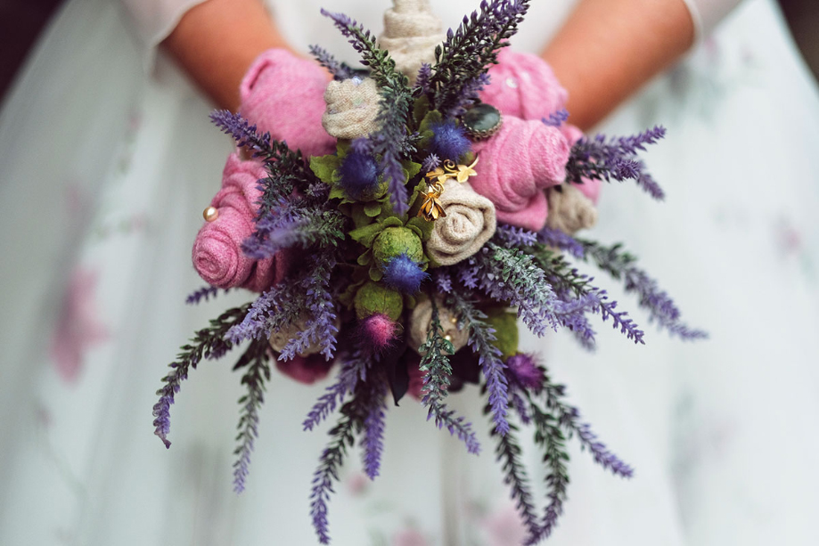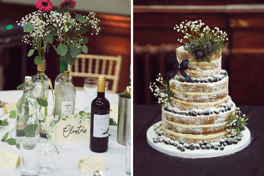 I used lots of Harris Tweed and Hebridean wool as decorative touches. Donnie’s mum was a weaver and a lot of the wool was from my late grandmother’s house. A dear family friend from the island also offered to make my bouquet out of Harris Tweed and the result was incredible. She did such a beautiful job; there is so much love in every stitch. She included pearls from her own mother’s necklace and brooches from both my late grandmothers. It was a pleasure to carry this down the aisle and even more so to keep forever.