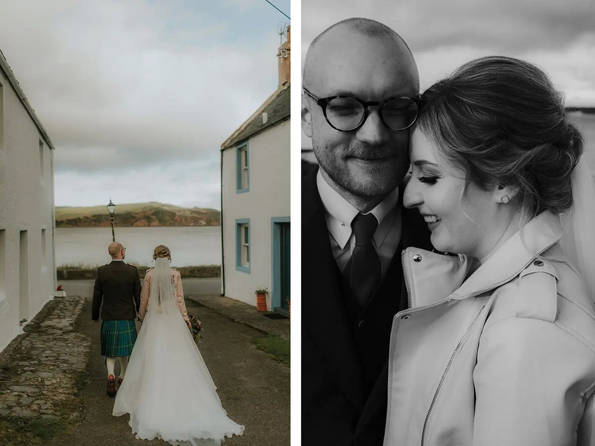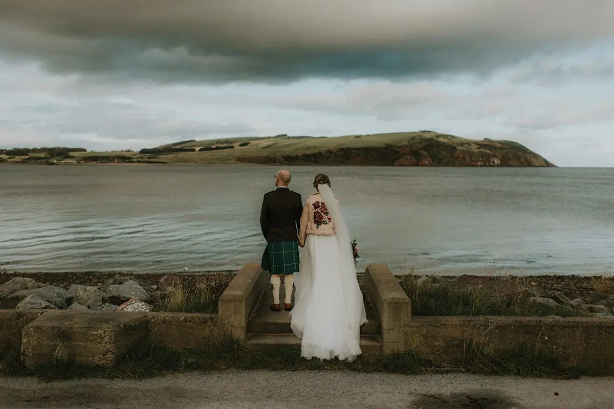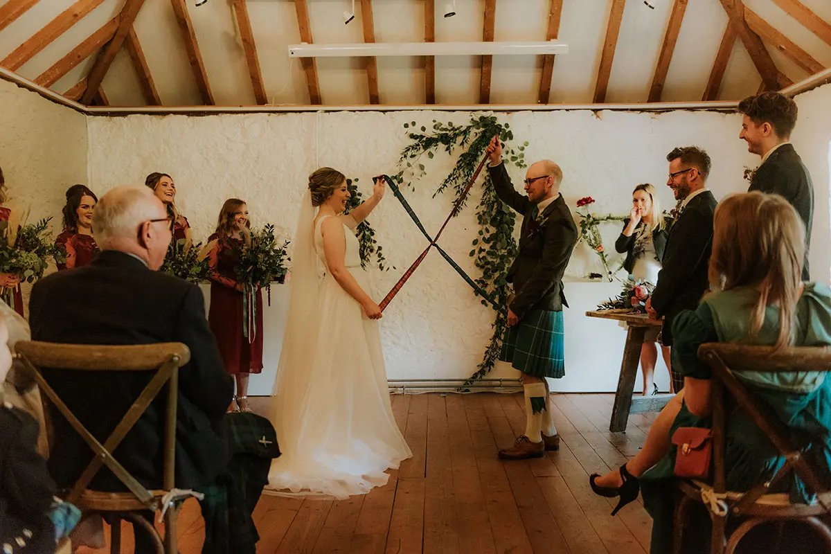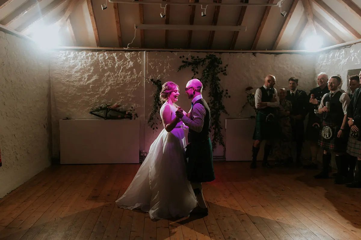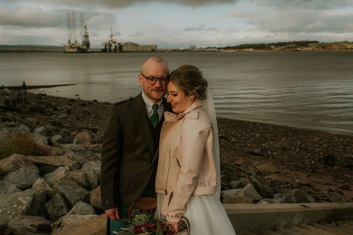 The venue was the first thing we settled on. We both knew we wanted to get married up north. David’s from Inverness and I’m from Glasgow, but I didn’t fancy a city-centre wedding. The idea of exposed beams and foliage tickled my fancy, so that’s where my Googling started. I typed in ‘exposed beams Inverness’ and, miraculously, The Stables at Cromarty Arts Trust came up.