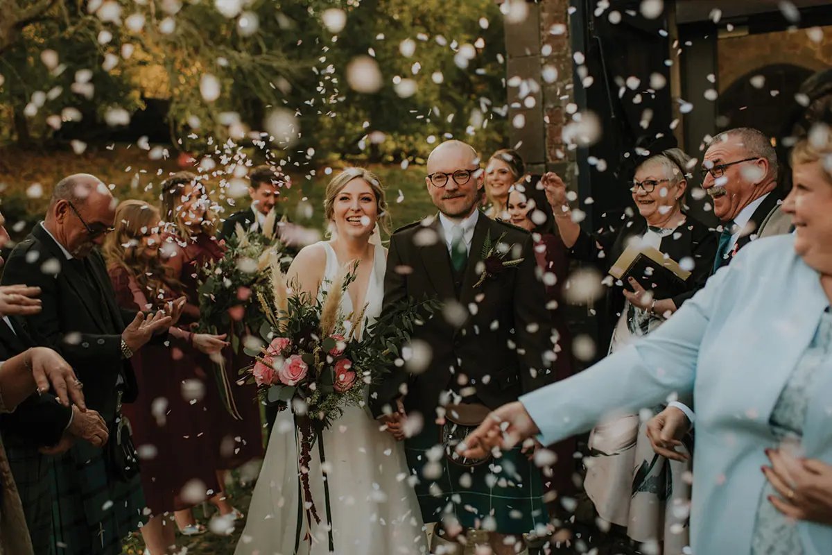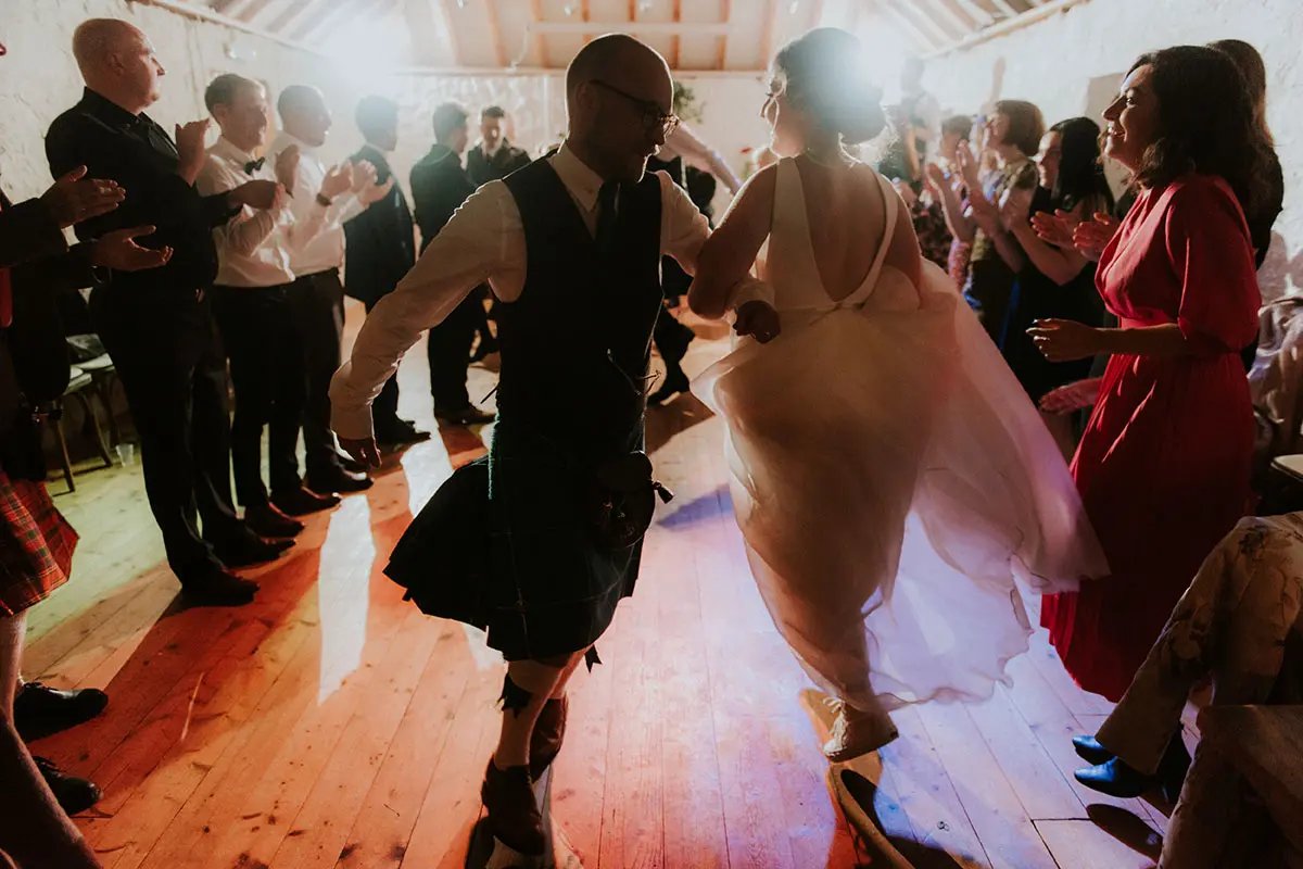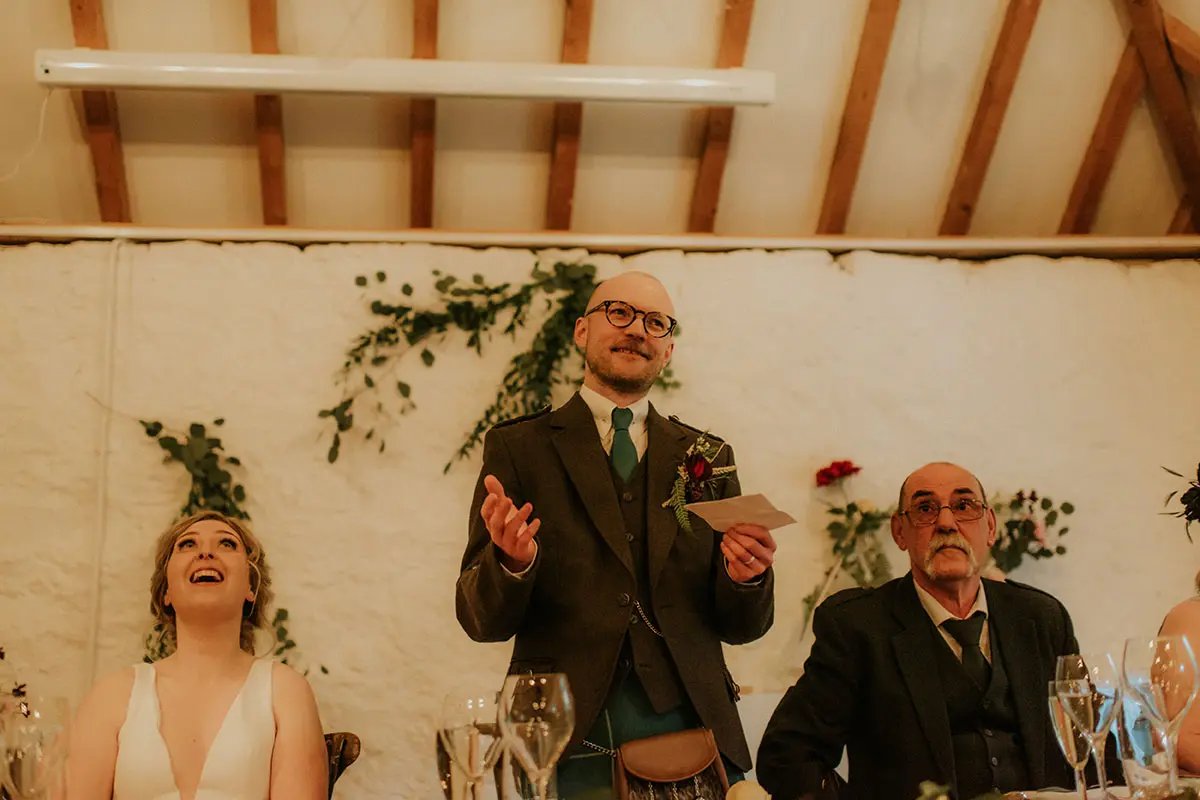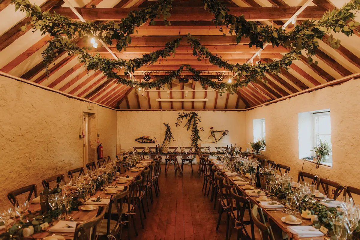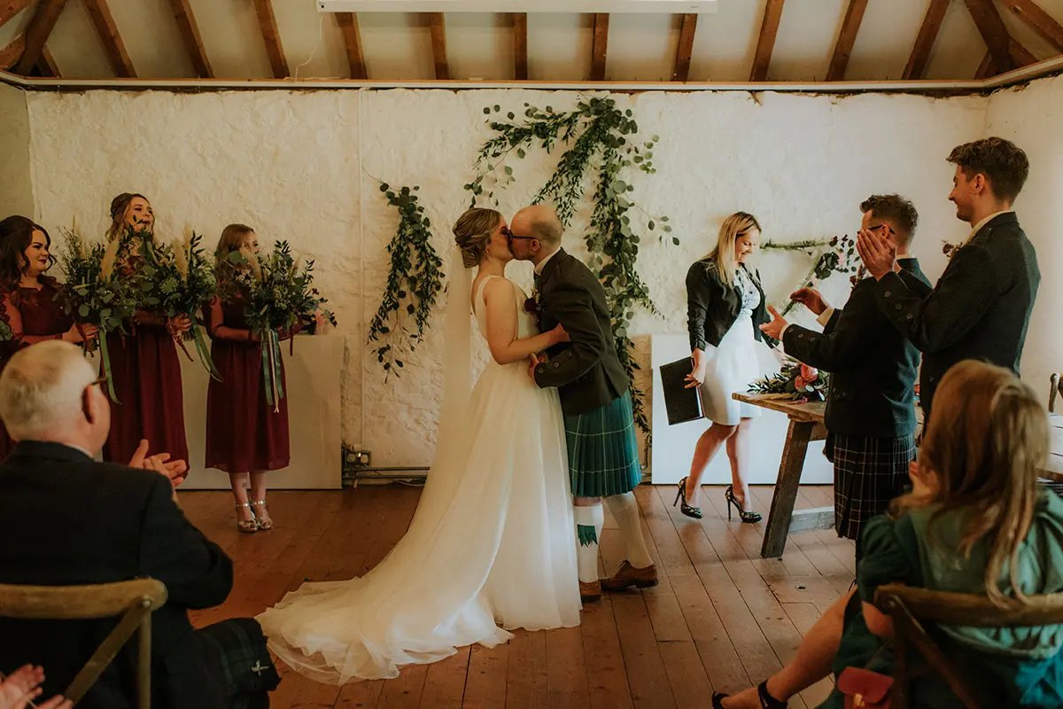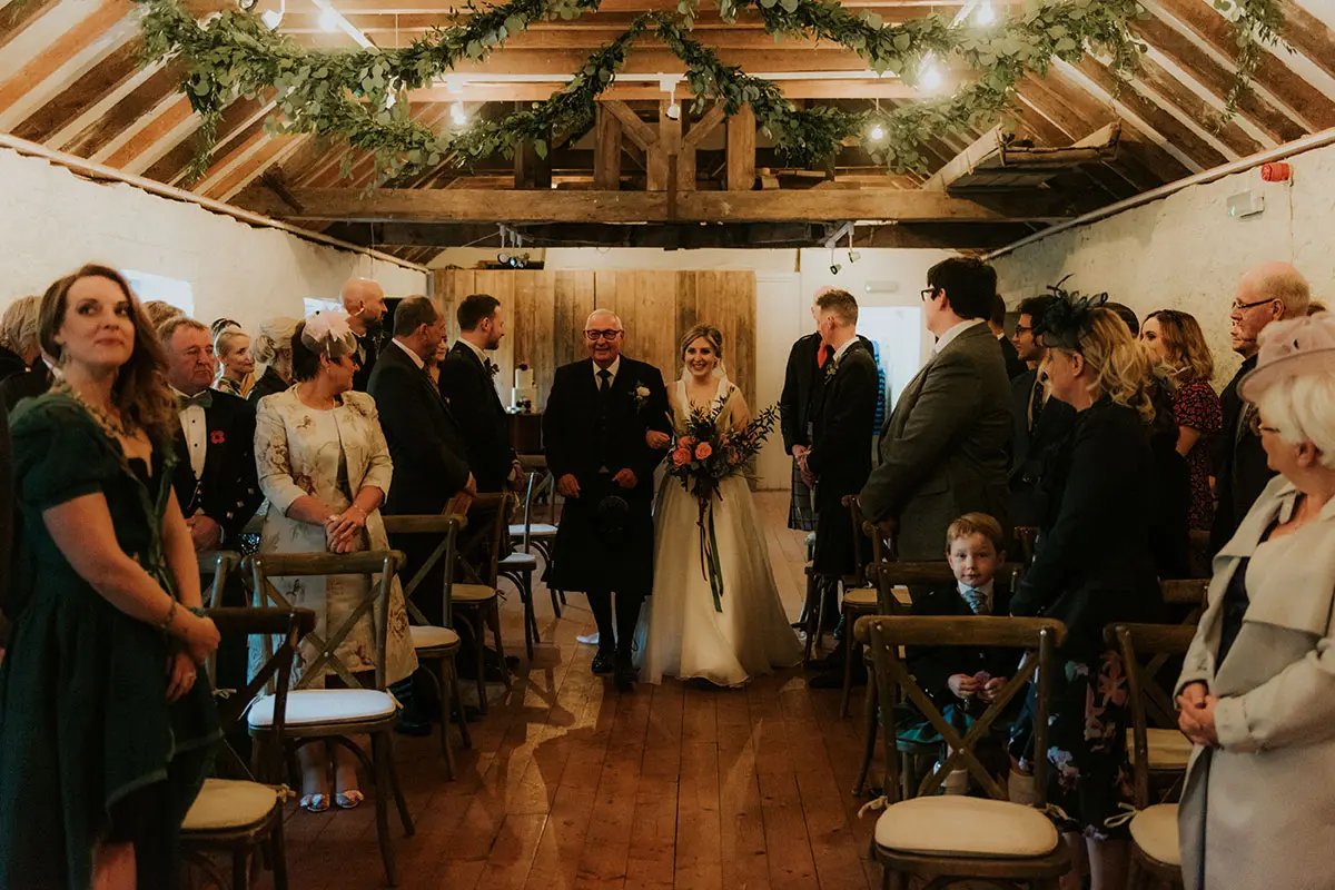 The venue was the first thing we settled on. We both knew we wanted to get married up north. David’s from Inverness and I’m from Glasgow, but I didn’t fancy a city-centre wedding. The idea of exposed beams and foliage tickled my fancy, so that’s where my Googling started. I typed in ‘exposed beams Inverness’ and, miraculously, The Stables at Cromarty Arts Trust came up.
