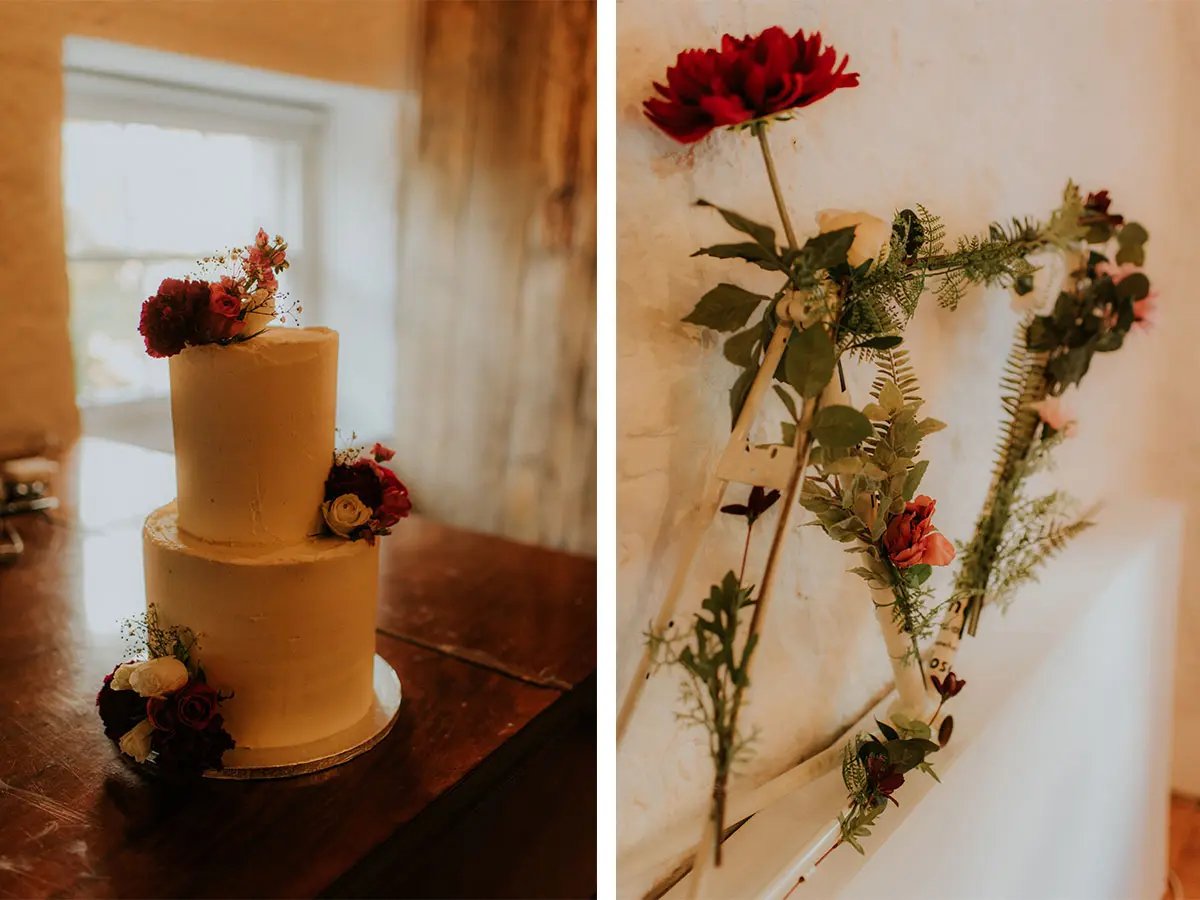 I made the wedding cake as I love baking. I whipped up my signature madeira sponge with raspberry jam and buttercream and decorated it with fresh flowers. Admittedly, it was pretty manic setting it up at 7am on the day, but I don’t regret doing it.