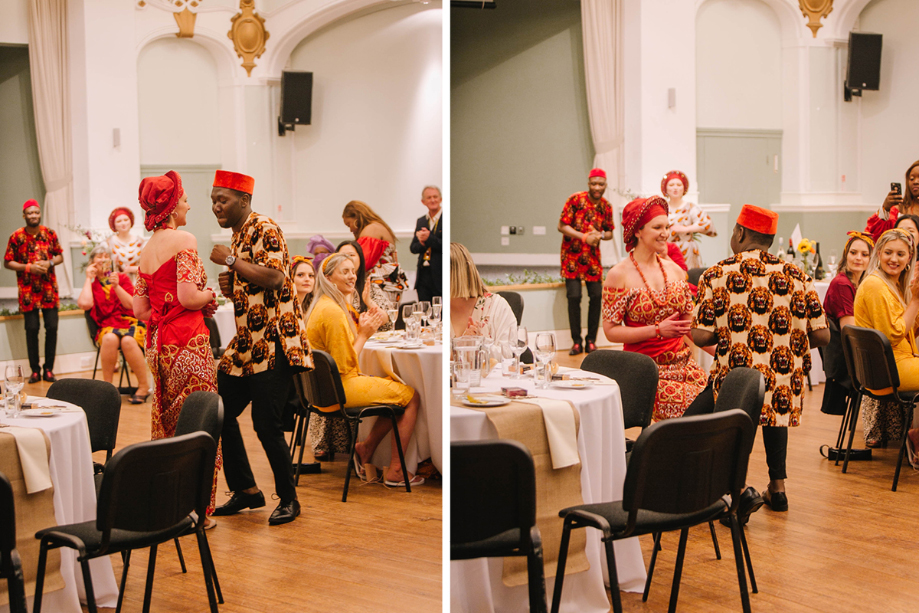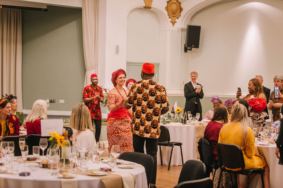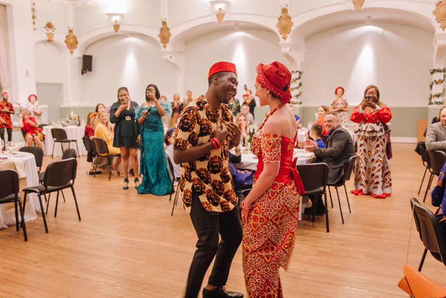 Dancing is a big part of both of our cultures. We danced into the reception venue in traditional Igbo style, then later in the evening, we performed a traditional Manx wedding dance called Peter O’Tavy.