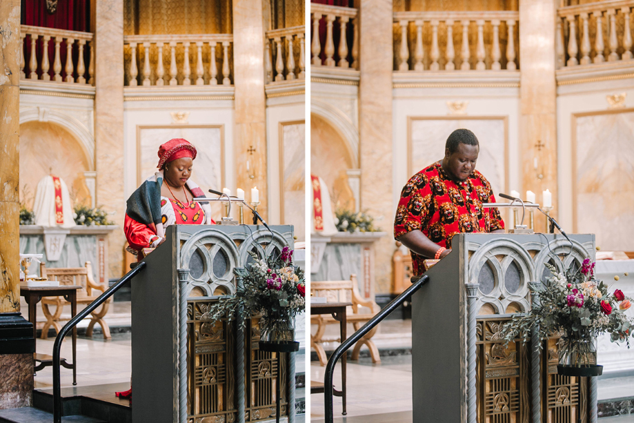 We are both practicing Catholics and met at church, so the ceremony was very important. We had a Mass, included lots of family and friends in the service and had prayers in English and Igbo. We organised a small choir of our friends to sing during the service, conducted by Ebuka. It was a special moment.