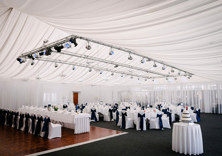 Showcasing everything you’d expect from a marquee but with added sophistication is Cornhill Castle’s wedding pavilion. It’s fully heated and decorated with chandeliers and ceiling draping – you’ll feel right at home here in Biggar.