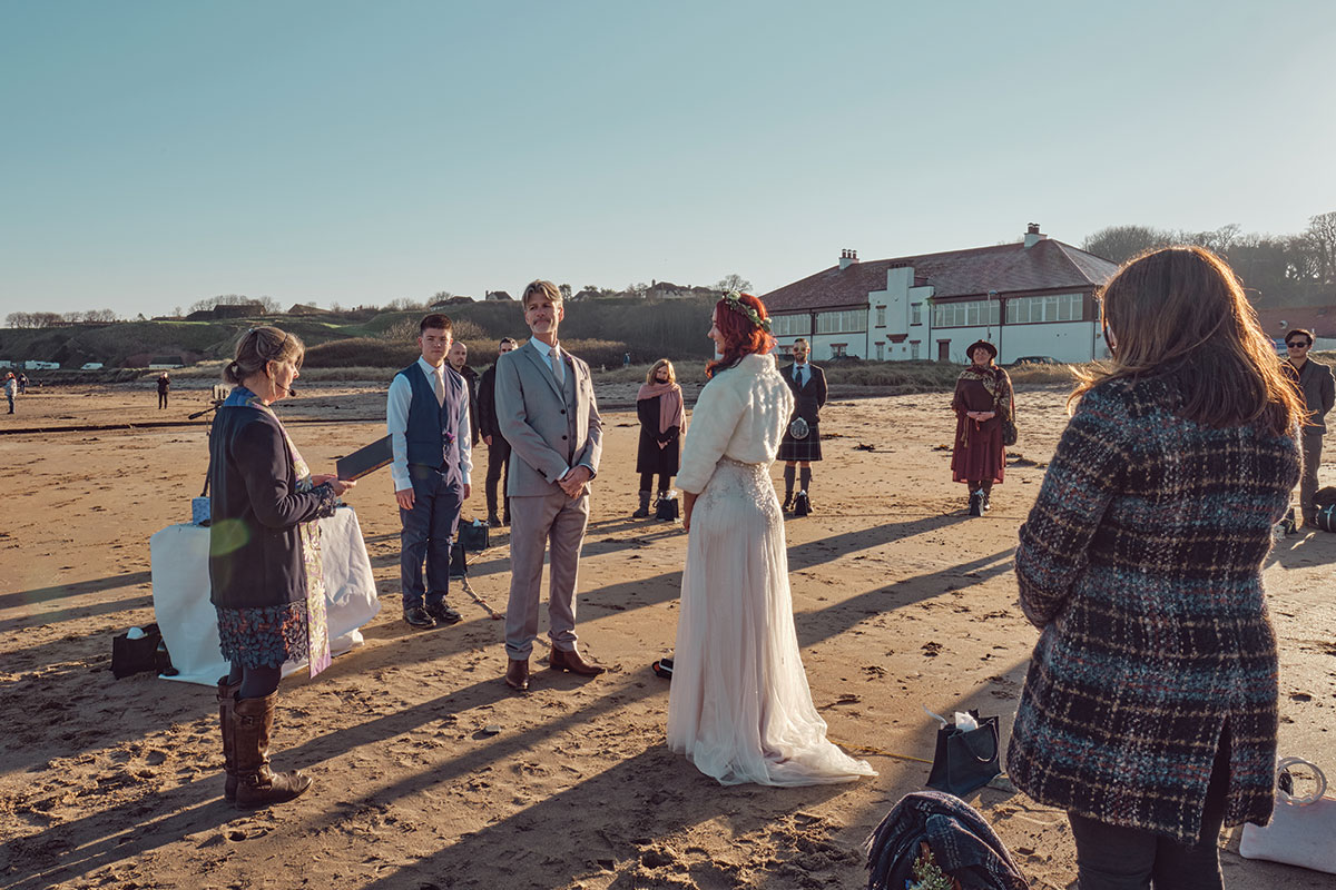 What should couples expect from their celebrant on the big day itself? The celebrant will, of course, conduct the ceremony, but they should also be expected to co-ordinate events on the day – things like checking you’ve got the marriage schedule; that the room is set up and safe; the props are there for any symbolic gestures; and that any pieces of music, readers or contributors are available and prepared. They should also run through things with the wedding party, and update the ceremony with any last-minute changes.
