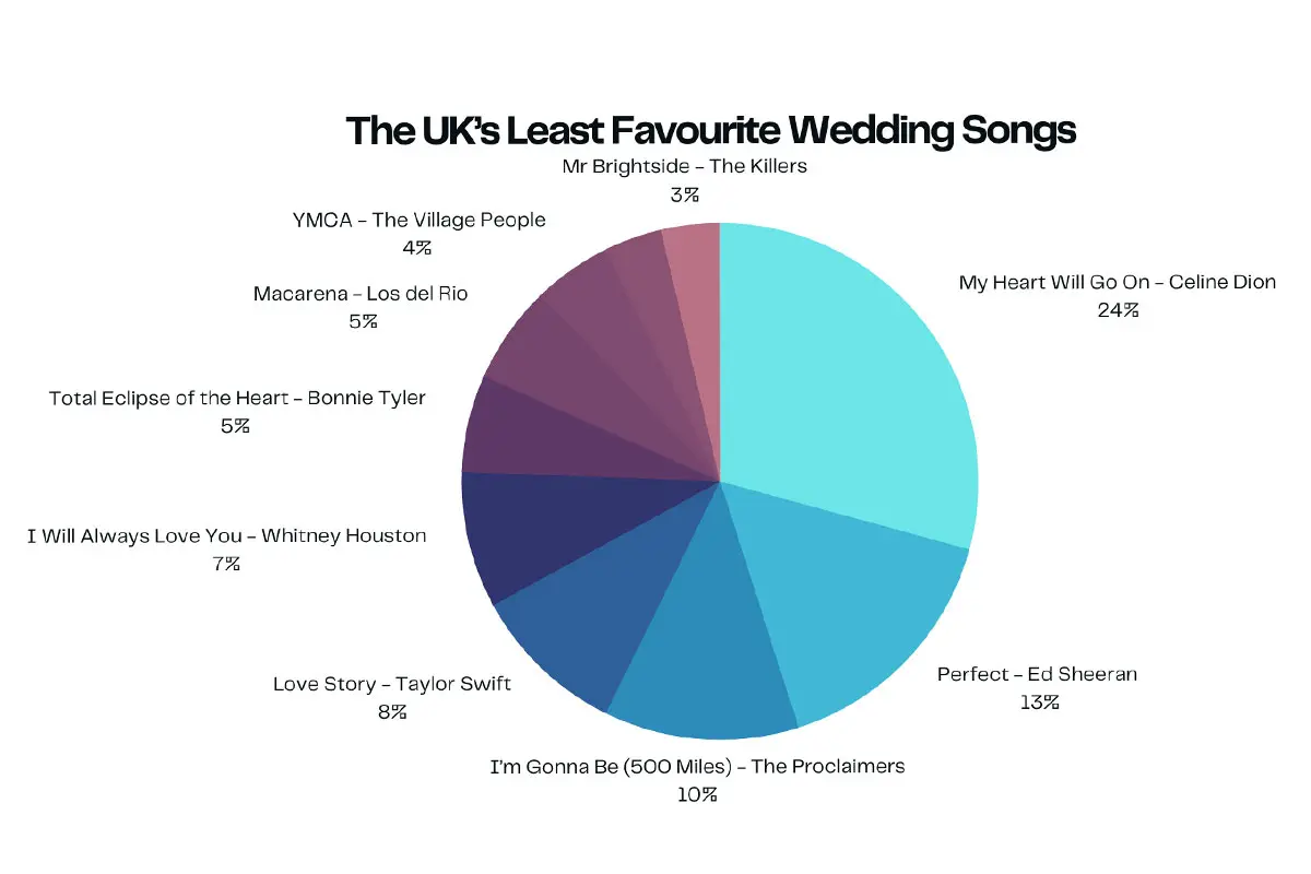 Although, it wasn’t quite at the bottom as Celine Dion has bagged the least favourite song to hear at a wedding, with her song ‘My Heart Will Go On’.