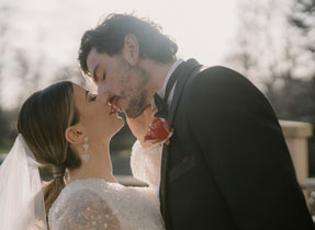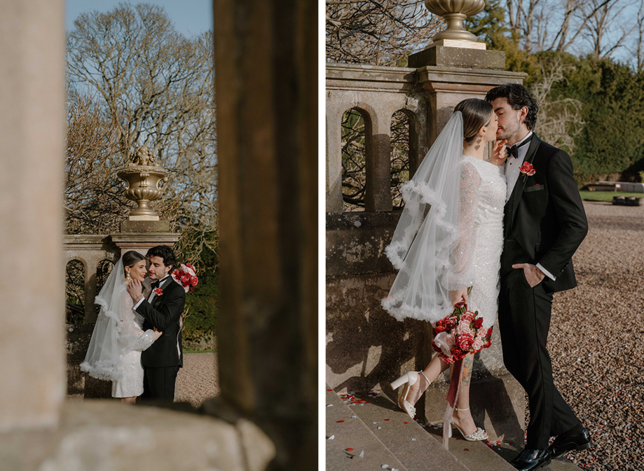 “Makeup was flawlessly applied by Jenny Ross and featured a romantic red lip, while hair was styled into a sleek bridal ponytail by Rebecca J Hair,” adds Lauren.