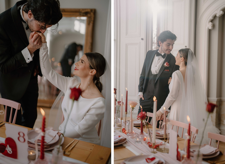 Content creator Social Brides Club used hearts, bows and the colours of love for this styled photoshoot that offers a cool spin on a 14th February wedding