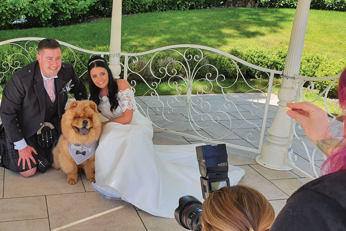 Former wedding makeup artist and lifelong dog-lover Pauline Clark has run Ramoth Pet Retreat in the Clyde Valley for the past seven years. She decided to launch Vows Including Pets (VIP) three years ago, after constantly hearing engaged clients say they wished their beloved pooch could be there. “Now, I board the dogs and take them to weddings,” says Pauline. “We are always on hand, so while you are busy mingling or having group photographs taken, we will take care of your dog’s needs, so you can relax and enjoy yourself. Our service starts at £200, which includes collection from home the day before the wedding, several walks and chaperoning at your venue. We’ll also interact with them to help the photographer get the best shots of your dog while we keep them focused.”