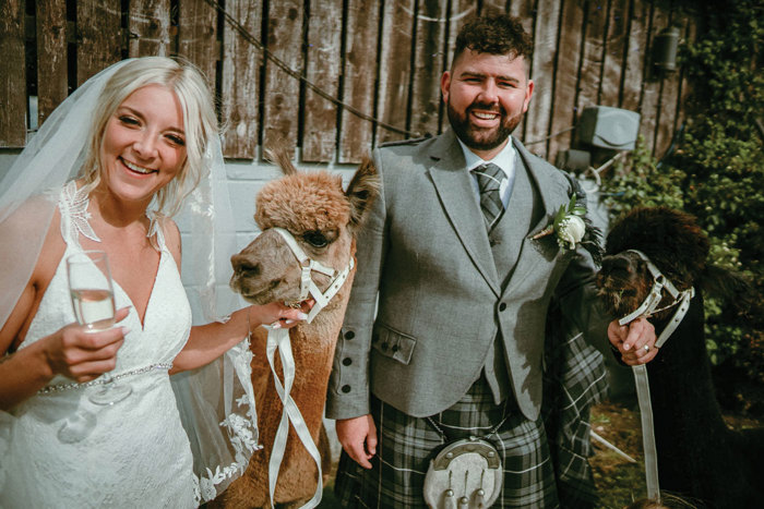 Claireville, which is based in Fife and serves the Kingdom and surrounding area, has a herd of almost 40 alpacas and clearly loves a good pun – offering three main ‘alpackages’, ranging from Bronze (three alpacas, two hours, £350), to Gold (six alpacas, four hours, £650). “All of our packages include a meet-and-greet consultation at our Leven farm before the wedding, with colour-matched halters, lead ropes and accessories on the day,” promises Claire. “We can even add bow ties, flower crowns and other accessories if you’d like.”