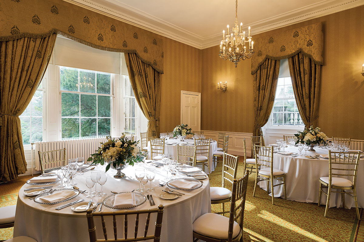 There are two options: the Morton package, based on a minimum of 80 guests, starts from £11,925 in summer; the Earls, meanwhile, caters for smaller weddings (summer prices start at £7,175). Both include a wedding planner, a three-course meal and floral centrepieces. Enhancements such as fireworks, bridal showers, golf experiences, pipers and outdoor ceremonies can be added.