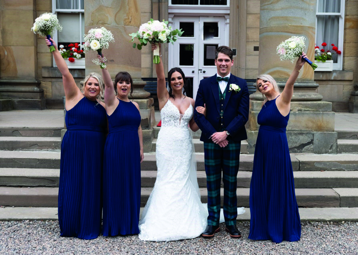 May (far left) herself was a bridesmaid at her friend Emily’s wedding at Balbirnie House (Photo: Crieff Photography)