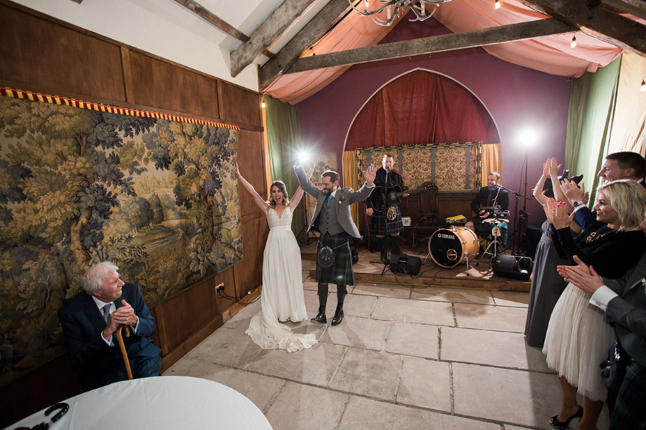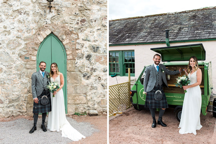 Guests at Laura and Gareth’s wedding not only swooned over the vintage Mustang transport, they were the first ever wedding party at Buittle Castle near Castle Douglas
