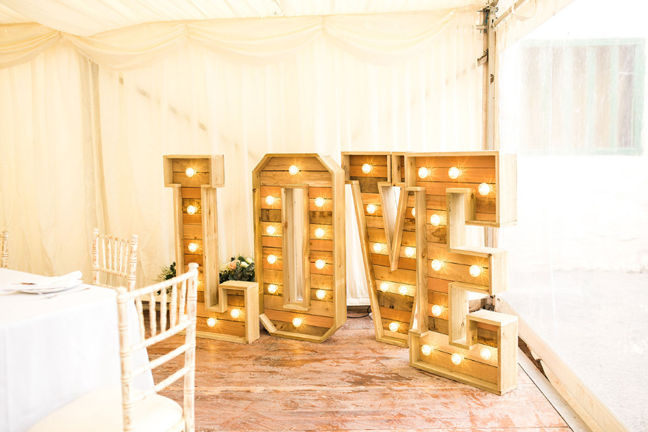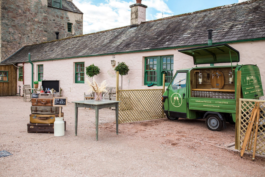 The non-essential item I couldn’t resist was our bar by Love Fizz. It really added to the atmosphere on the day. With the sun shining, drinking outside felt like we were in the Mediterranean! Eilidh and her team sourced wine and even helped us decorate the hall with lights.