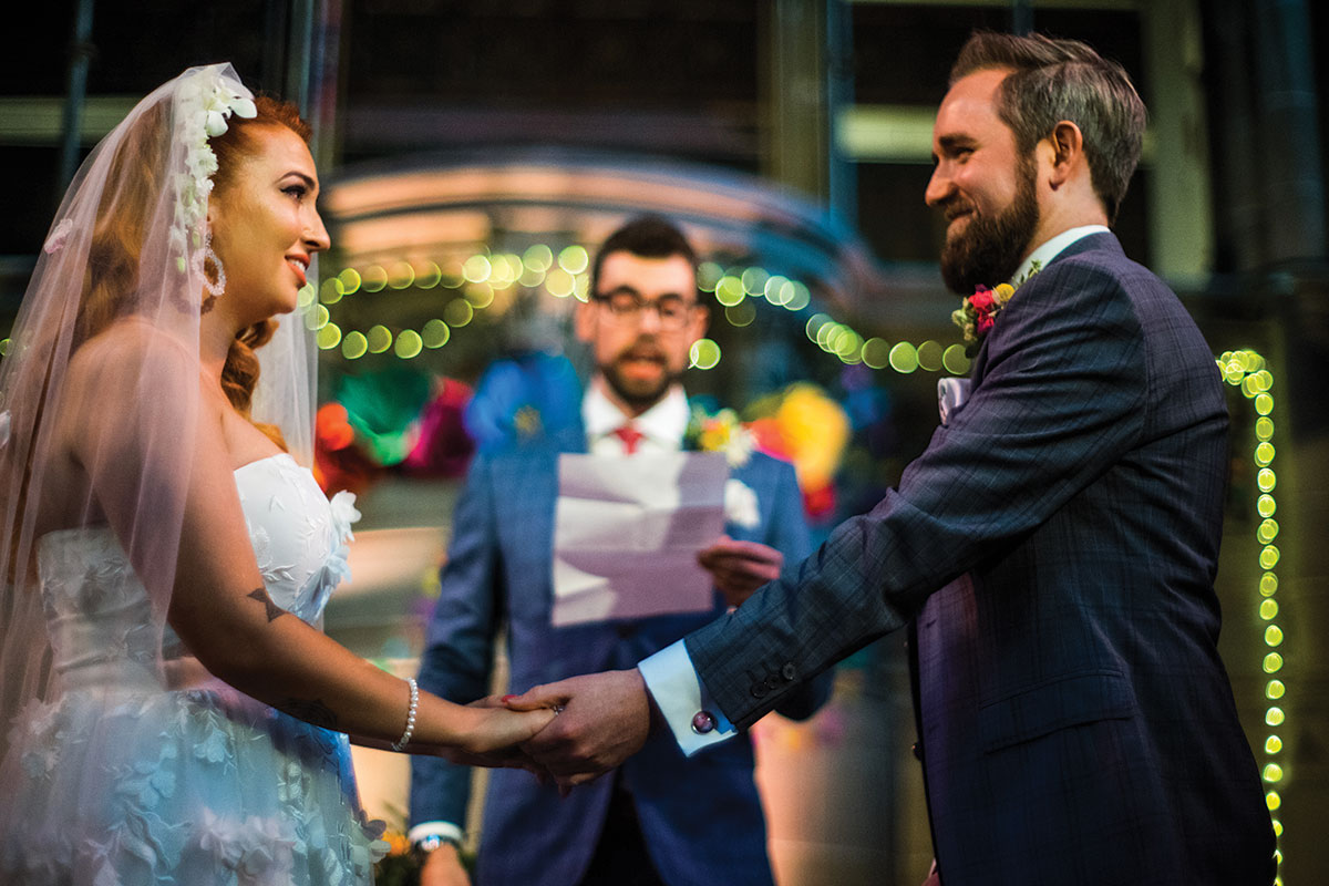 “Cameron and I got engaged in possibly the least romantic way. We were in a pub that we both love in Glasgow, discussing the subject of marriage. I said I was open to the idea, and he popped the question there and then. No ring, no getting down on one knee: just two people deciding to be together forever.