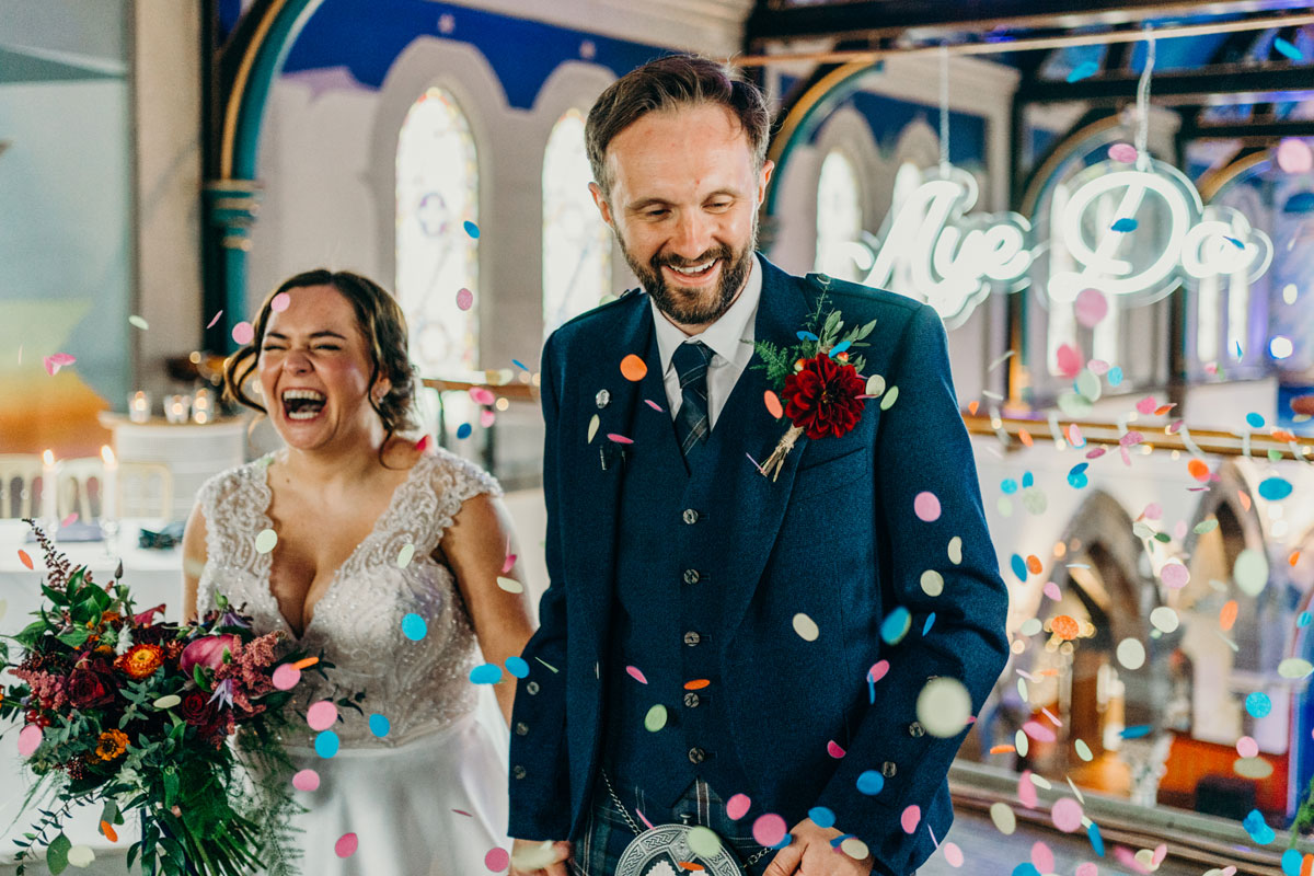 We both made hours and hours of Spotify playlists in different genres and for various moods. The ceremony was mainly relaxed – chilled-out covers of heavier songs that we love – while the drinks reception was lots of punk-pop tracks. Our good pal Jonny Dunlop, who DJs at the Cathouse in Glasgow, was in charge of the evening entertainment. He did a fantastic job, playing everything everyone wanted.