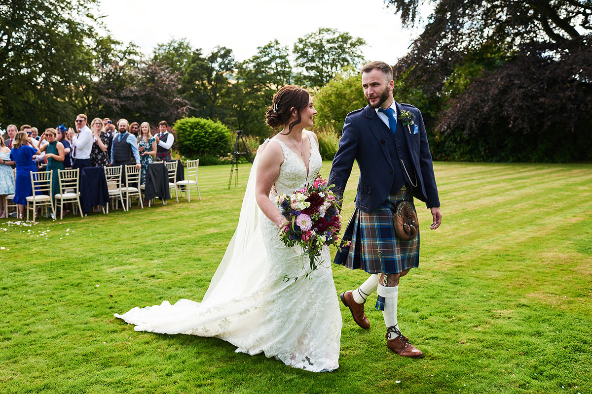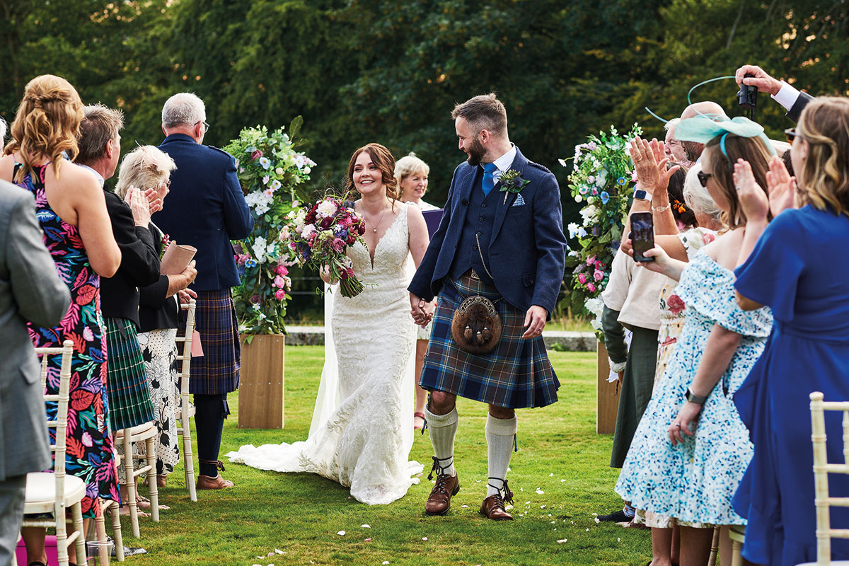 As sustainability was key for bride Nicole, having flowers from less than 40 miles down the road was a huge plus: “Peonies are my favourites but sadly they weren’t in season for our wedding, and we didn’t want to ship them. Instead, Gemma at Twiggs & Thistles picked different types of flowers from the local flower farm that were stunning. They had a Scottish feel thanks to the thistles, and all of the colour pops I’d wanted.”