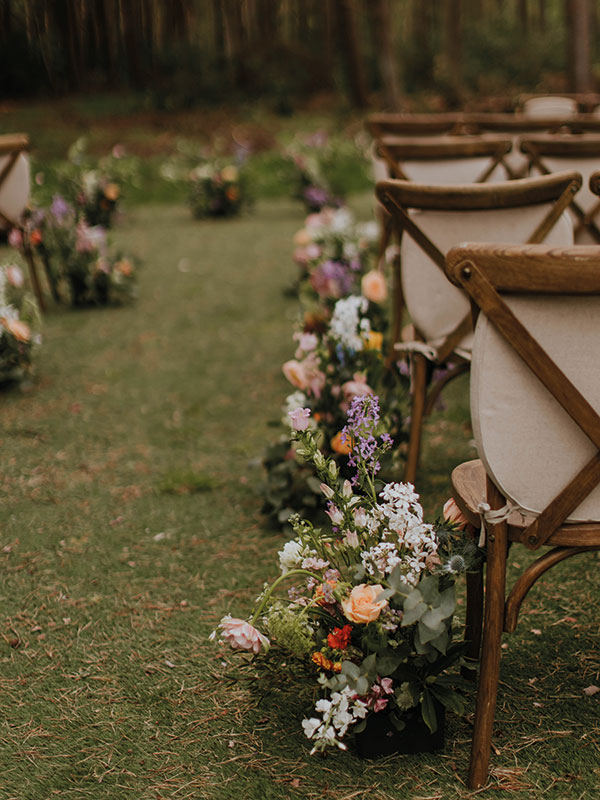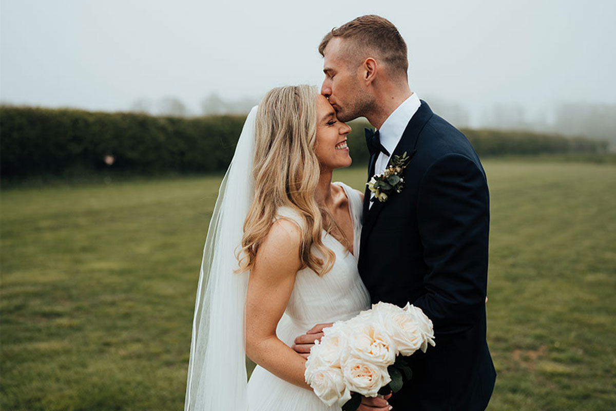 Having been friends with Helen at The Greenshed Flower Studio for years, Jasmine knew the florist would nail any arrangement she wanted for her nuptials. “I made a moodboard with the colour scheme so Helen had a good idea of how our day would look and feel,” she says. “I gave her a loose brief of the types of flowers I wanted as I know she has an amazing eye for gorgeous blooms. I did, however, make some specific suggestions to ensure we were on the same page.”