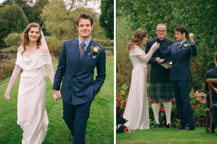 Their day included their rescue dog Moose as the ring bearer, a traditional ceilidh (which saw the bride change into another iconic Vivienne Westwood dress) and actor Alistair Petrie, who plays Connor’s dad in Sex Education, officiating the wedding.