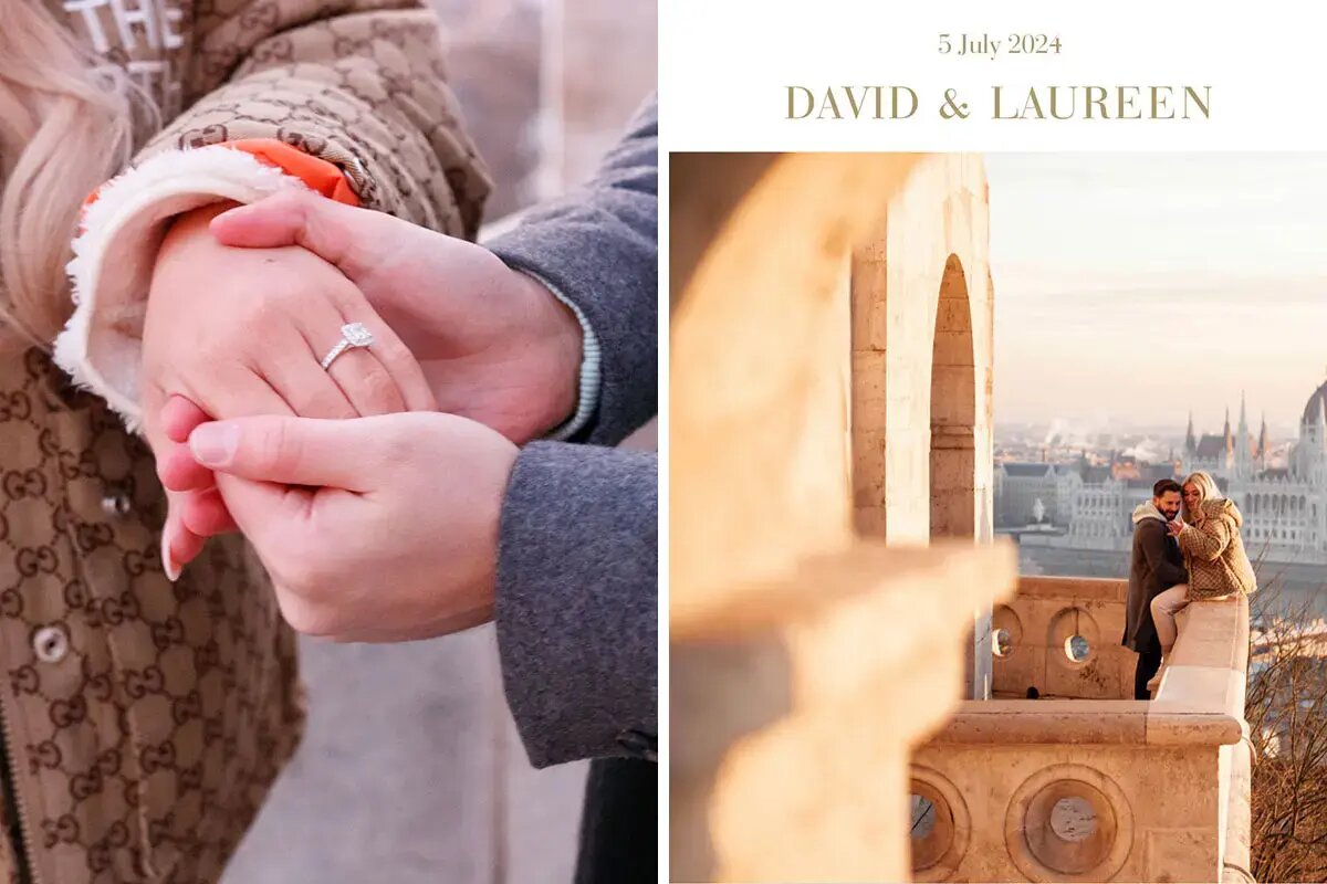 Unbeknownst to me, he was already down on one knee for quite a long time while I posed in different positions to get ‘the pic’ of the stunning sunrise over Budapest. When I eventually turned around, I didn’t realise he was proposing – I just assumed he was finding the best angles to photograph me! Finally, he nervously said my name, and I suddenly understood what was happening. I was in complete shock. David was so emotional he couldn’t speak, and I was the same. Neither of us said a word! It was perfect!