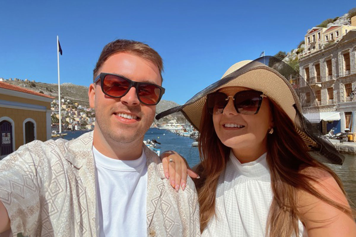 Our couple escaped to Santorini where they said ‘I do’ last month...but Laureen had time for one final update before becoming Mrs Farries!