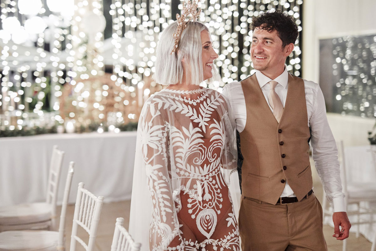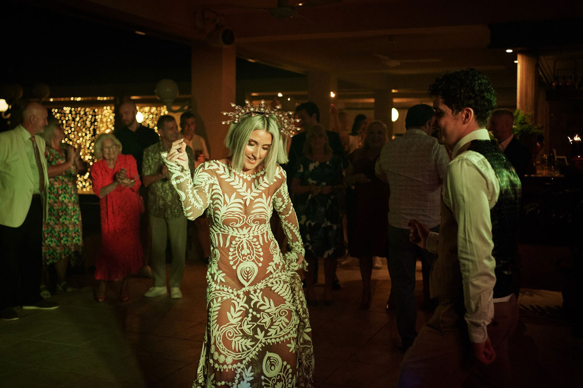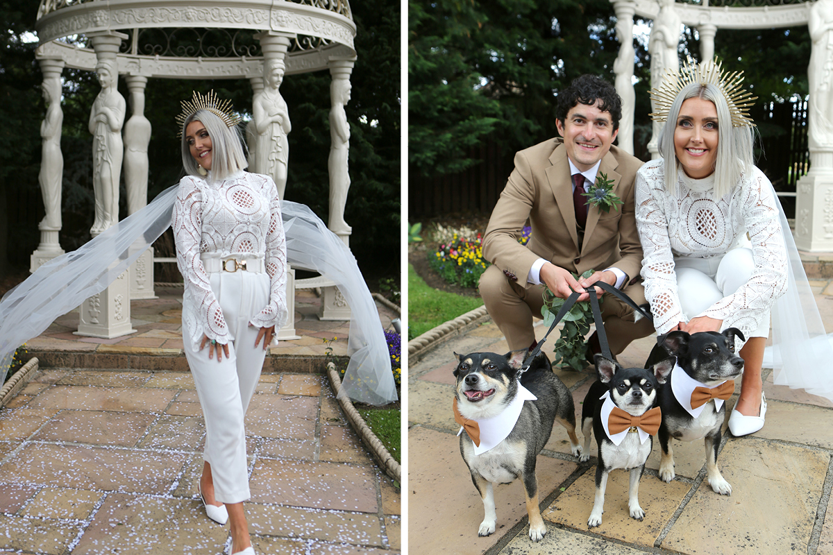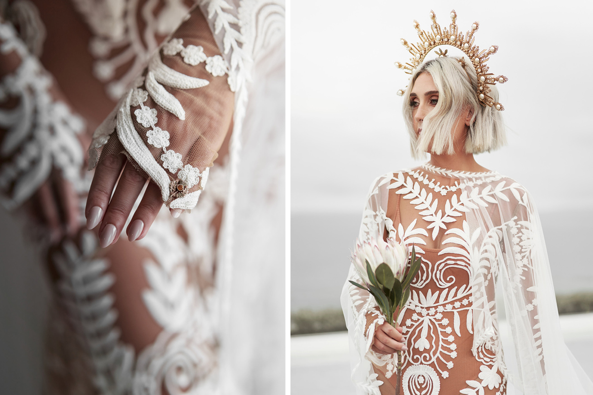 I personalised things by opting for a cape instead of a veil. I also ended up wearing a bodysuit under the dress, rather than a slip – I wanted to show off its detailed translucent fabric to its best effect. To top it off, I ordered bespoke handmade crowns from Etsy for both dates. I truly felt like a goddess!