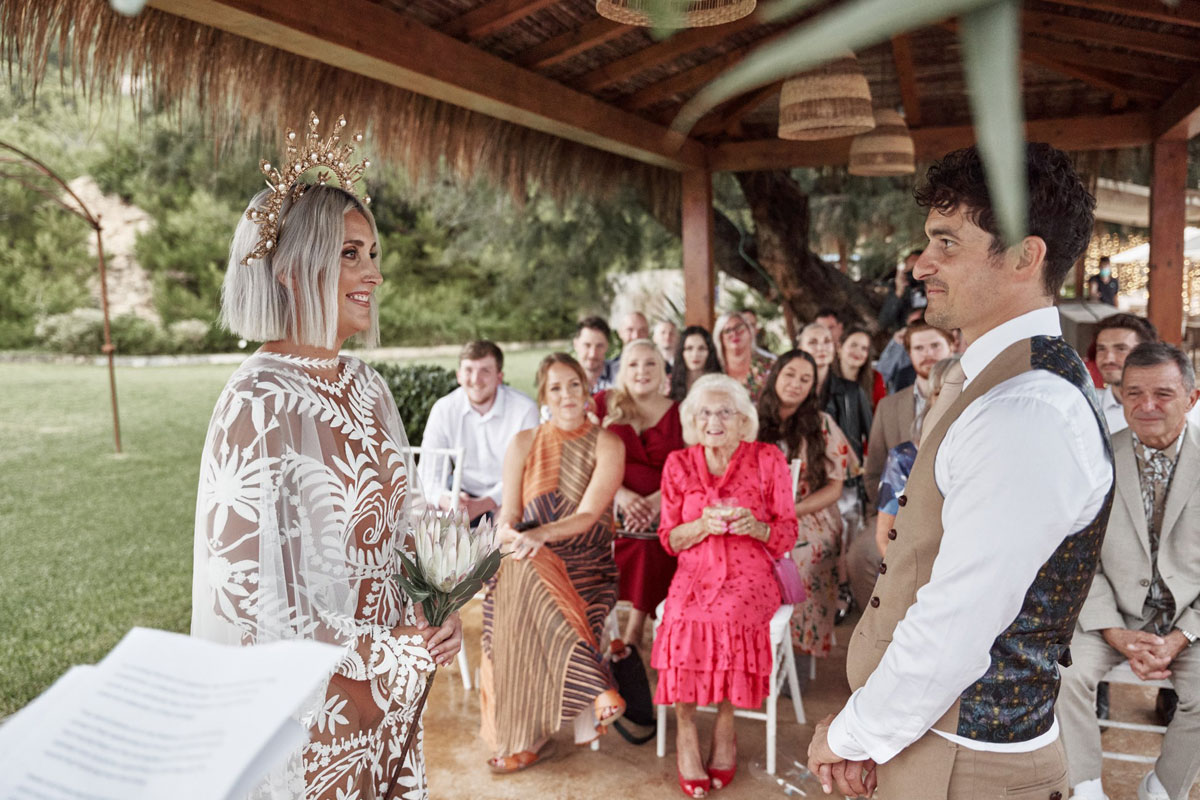 Sadly, we couldn’t get our celebrant, Andy, to Mallorca because of Covid. Derek’s uncle Brian ended up leading the ceremony there.