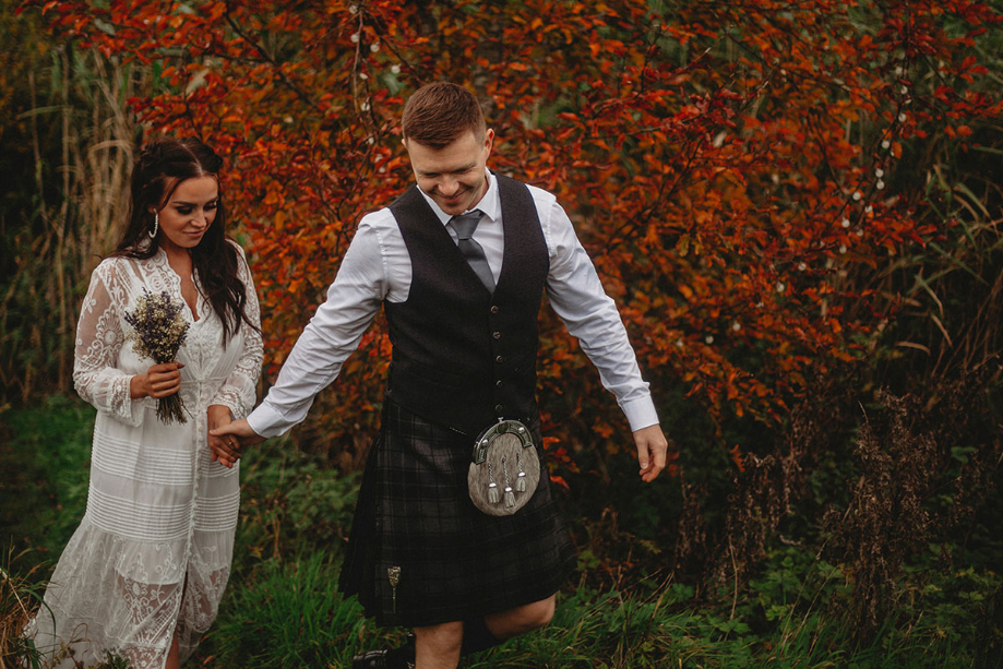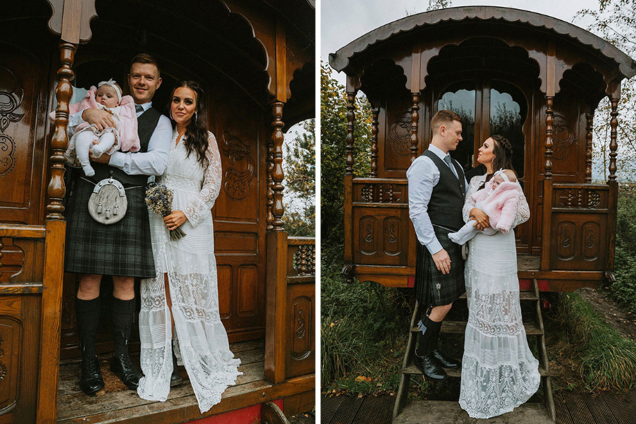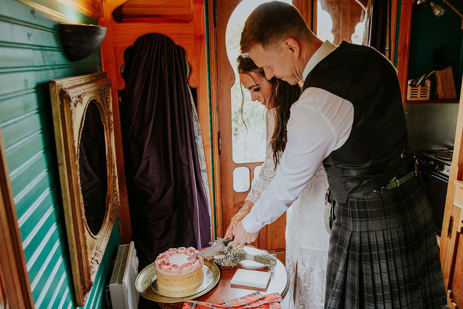 We knew from the outset that we wanted to elope. The first thing we did was book Roulotte Retreat, near Melrose in the Borders. The intricately carved and painted caravans are surrounded by a beautiful meadow and the laid-back vibe of the entire place really appealed to our style.