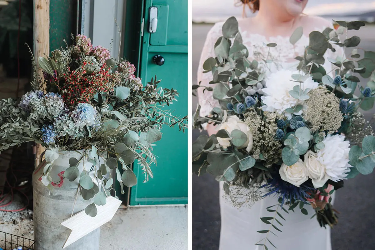Flowers arranged by the bride and her mum