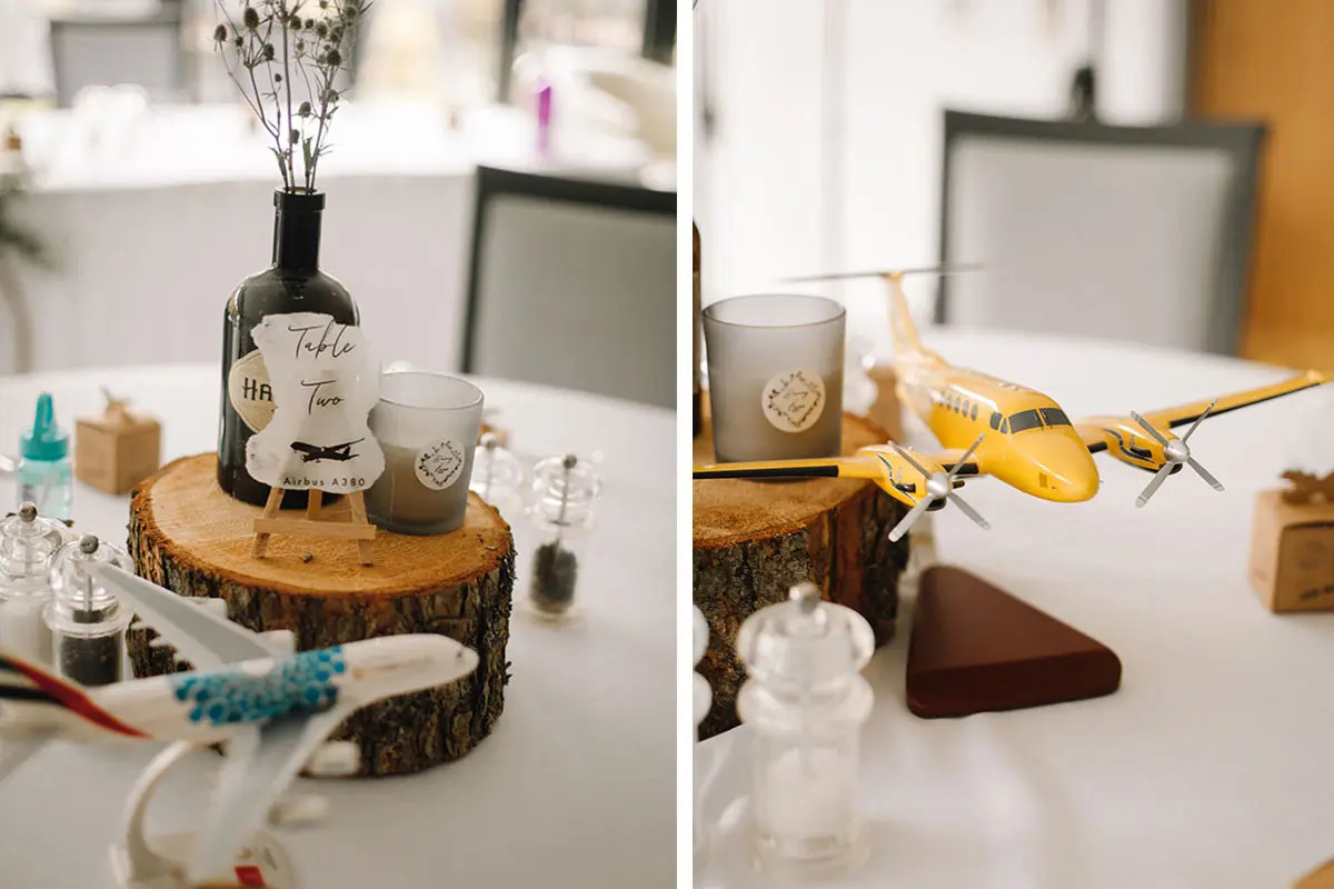 I tried not to let aviation become the driving force behind every single aspect. That said, the tables were all named after aircraft that meant something to us and we had little aeroplane boxes filled with Scottish tablet. FYI, the actual plane used as a backdrop in our ceremony (G-PUPY) is the aircraft that Danny and I take flying around Scotland.