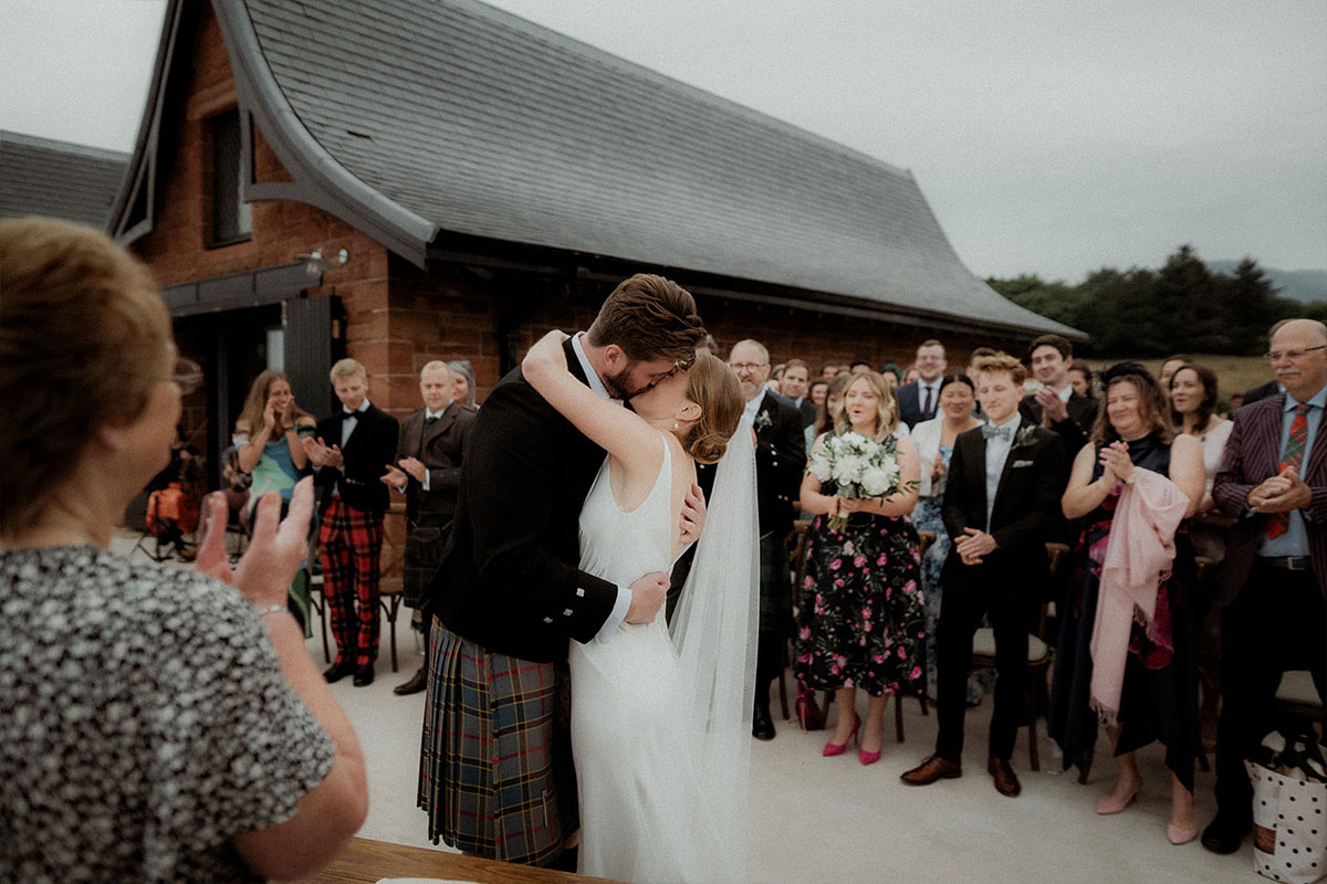 The pair got engaged on a beach in Arran and after considering venues in Edinburgh and St Andrews, they realised they wanted to share their love of the Scottish island with 63 of their friends and family at its amazing Dougarie Boathouse.