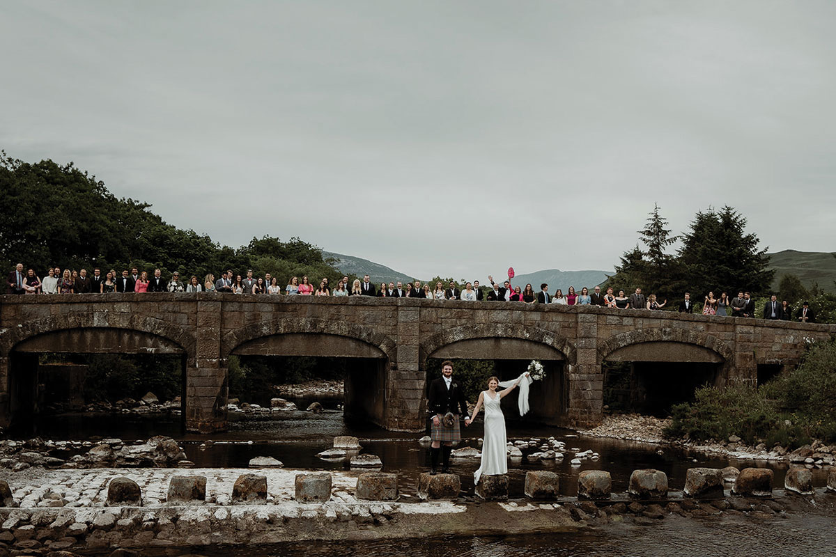 On the day, guests from Scotland, England, Europe, America, Australia and New Zealand hopped aboard the ferry to the island, where a full itinerary awaited. “We organised for the guests to arrive at noon for a 1pm ceremony. Then we had drinks, music, photos and games until dinner at 5pm. The ceilidh started at 8pm and we all left at midnight,” recalls the bride.