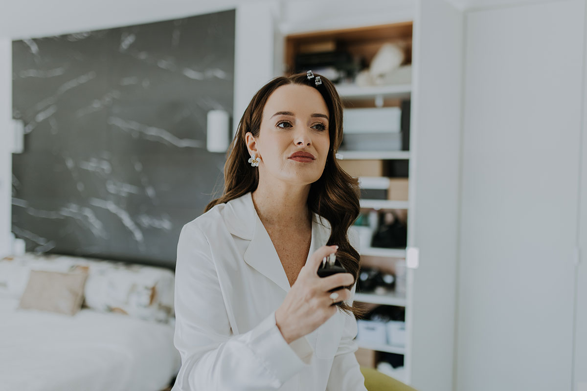 “We spent such a relaxed morning at my parents’ house, sipping champers, laughing and dancing around until it was time to leave!”