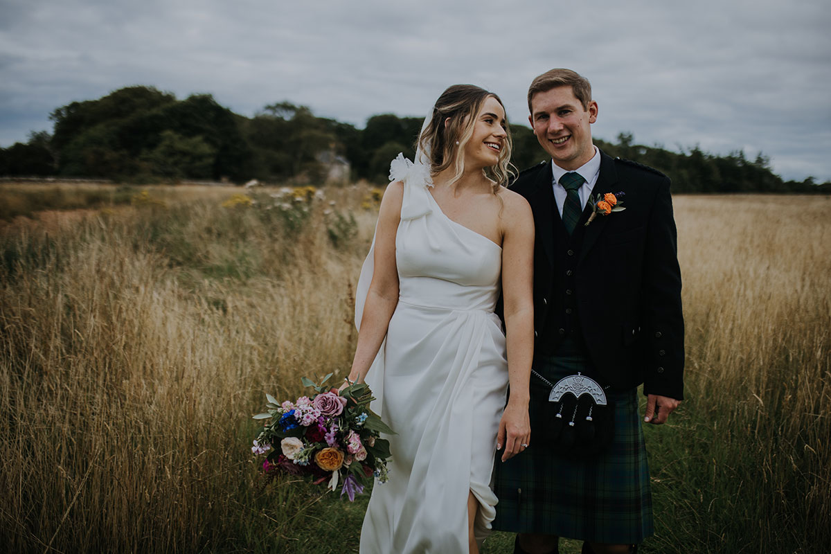 The venue was the first thing to sort on our list. We went to visit a few, but when we saw Kinkell Byre, we walked out of the viewing knowing it was perfect for us. I wanted bright and bold flowers, so its rustic backdrop was perfect for those.